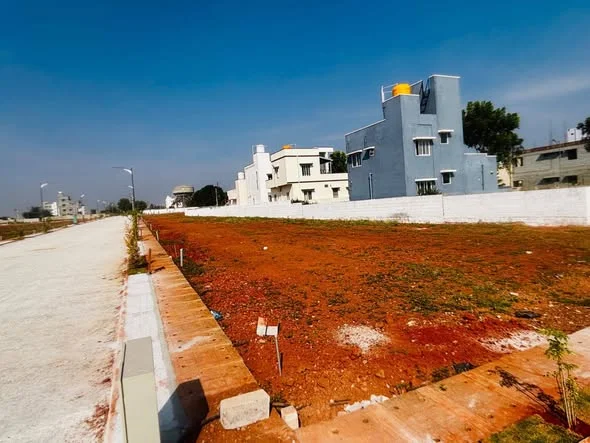 This is an advertisement for land investment opportunities in Devanahalli, opposite Brigade Orchards, located 5 KM from the airport and 500 meters from STRR Ring Road. The land is ...