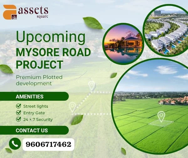 This advertisement promotes premium plots on Mysore Road near Hampapura, adjacent to the Karnataka Housing Board. The project spans 9 acres and includes 130 BMRDA and RERA-approved...