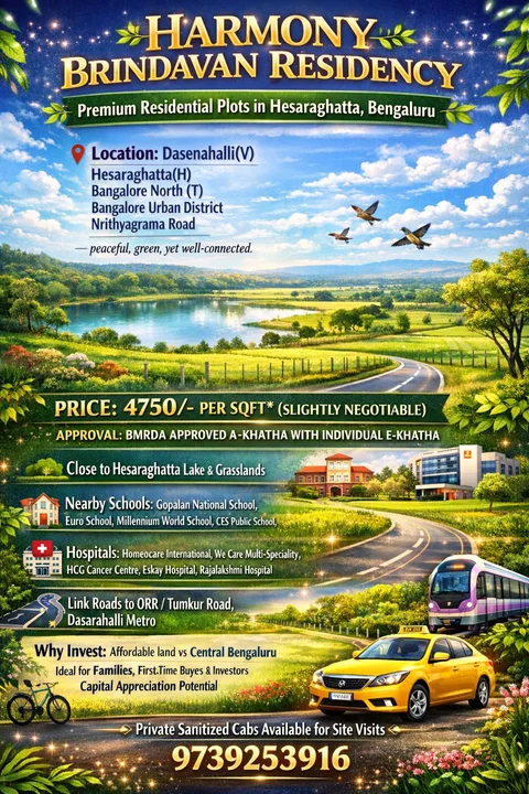 Plots for sale in Hesaraghatta, Bangalore, approved by BMRDA. Contact for more details.