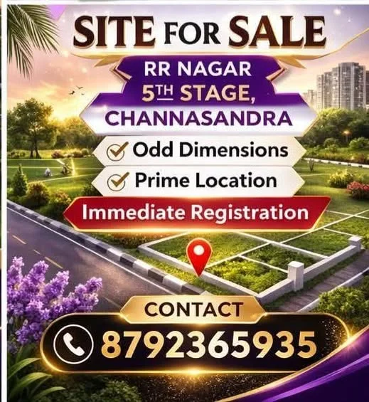 A site is available for sale in RR Nagar 5th stage, Channasandra, Bengaluru. The property has BBMP A khatha. The asking price is ₹29,000,000.