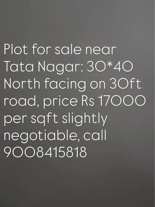 A plot for sale is available near Tata Nagar. The plot dimensions are 30x40, and it has BBMP A Katha approval. It is North-facing and situated on a 30ft road. The price is Rs 17000...