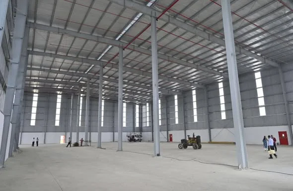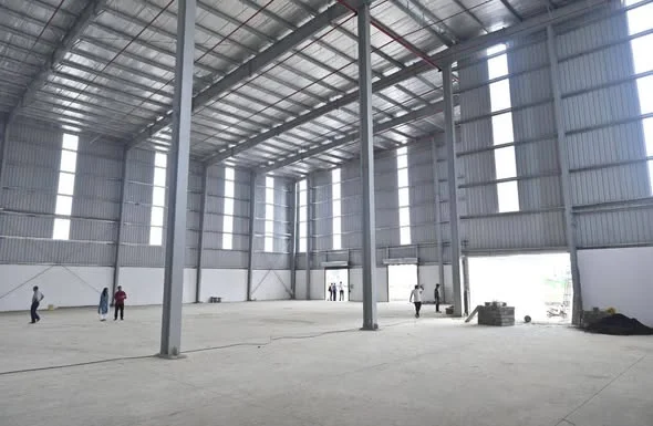 This is an industrial warehouse space available for long lease or rent in Navi Mumbai, specifically on JNPT Road. The plot size is approximately 2 acres (80,000 sqft) with a shed a...