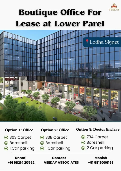 Boutique office spaces are available for lease in Lower Parel, Mumbai. The premium bareshell offices are located in a sought-after commercial hub. Option 1 offers approximately 303...