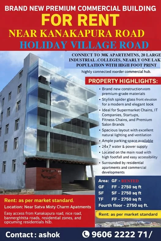 Commercial Space for Rent in KANAKAPURA ROAD x HOLIDAY VILLAGE ROAD | PropHunt | PropHunt