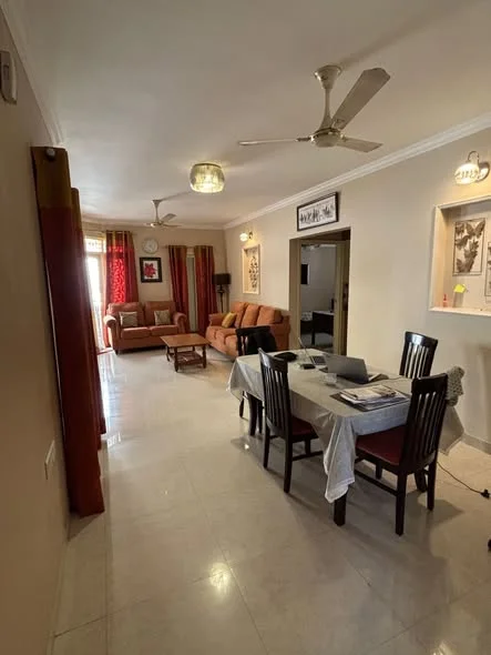 This is a fully furnished 3 BHK flat available for rent in Cox Town, located within a gated community. The rent is 95,000 INR, inclusive of maintenance. A security deposit of 4 mon...