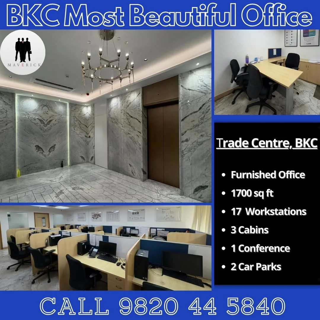This is a listing for a furnished office space located in Trade Centre, BKC. The office spans 1700 sq ft and includes 17 workstations, 3 cabins, and a conference room. The office c...