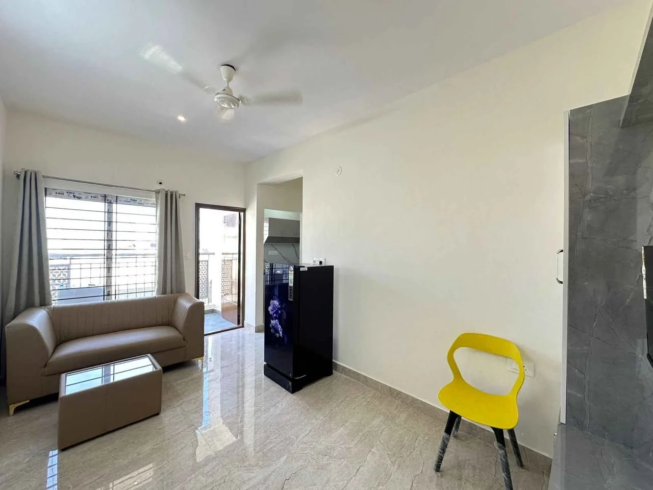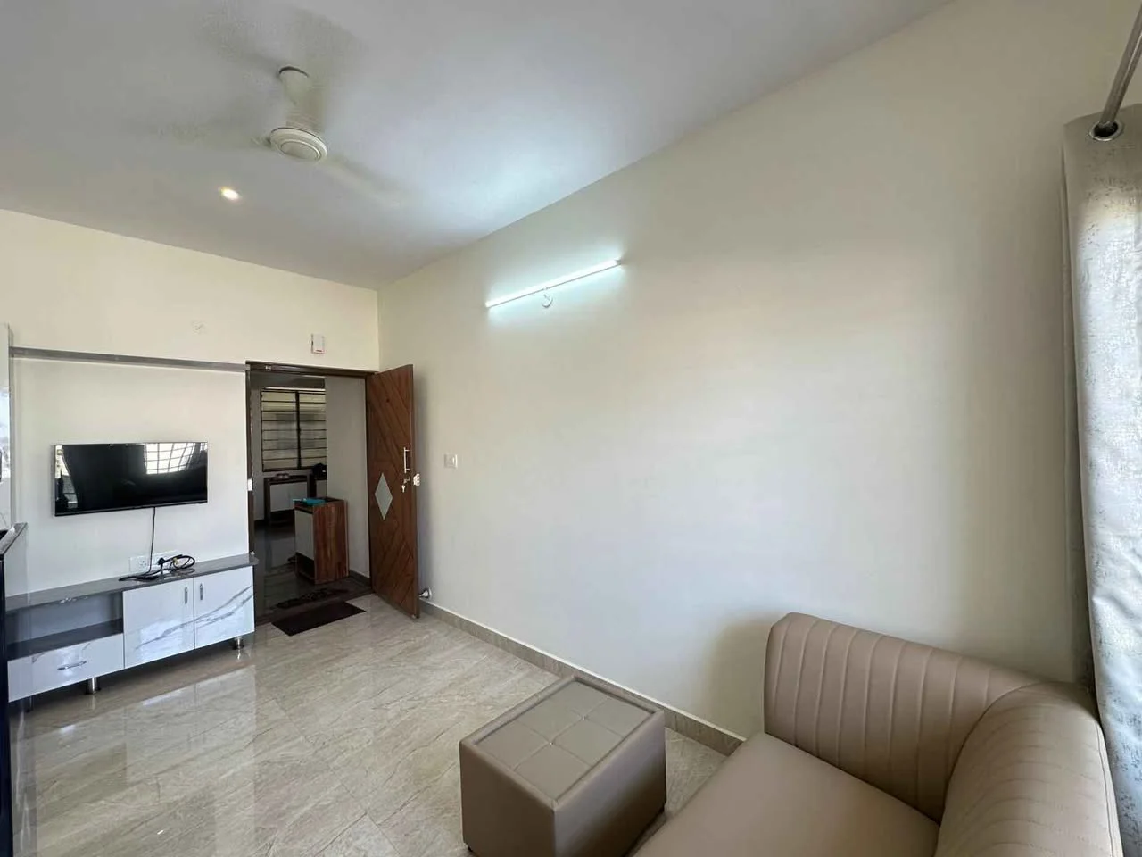 This is a 1BHK fully furnished flat available for rent in Kadubissanahalli, Bangalore. It is located behind Embassy Tech Village, Eco Space, and Oracle Tech Park. The rent is ₹32,0...