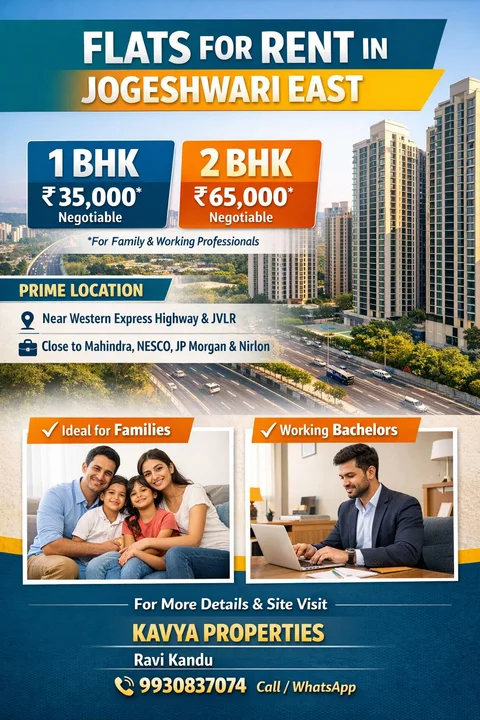 Flats are available for rent in Jogeshwari East, Mumbai. Options include 1 BHK and 2 BHK apartments in a prime location with excellent connectivity to the Western Express Highway a...