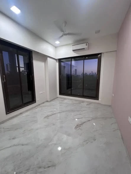 This is a 2.5 BHK builder finish flat located in Lower Parel, just a 2-minute walk from the metro station and Phoenix Mall. The building includes a rooftop swimming pool and deck.