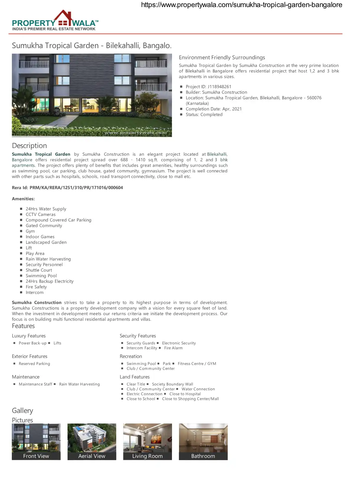 Sumukha Tropical Garden by Sumukha Construction is an elegant project located at Bilekahalli, Bangalore offers residential project spread over 688 1410 sq.ft. comprising of 1, 2 and 3 bhk apartments. The project offers plenty of benefits that include...