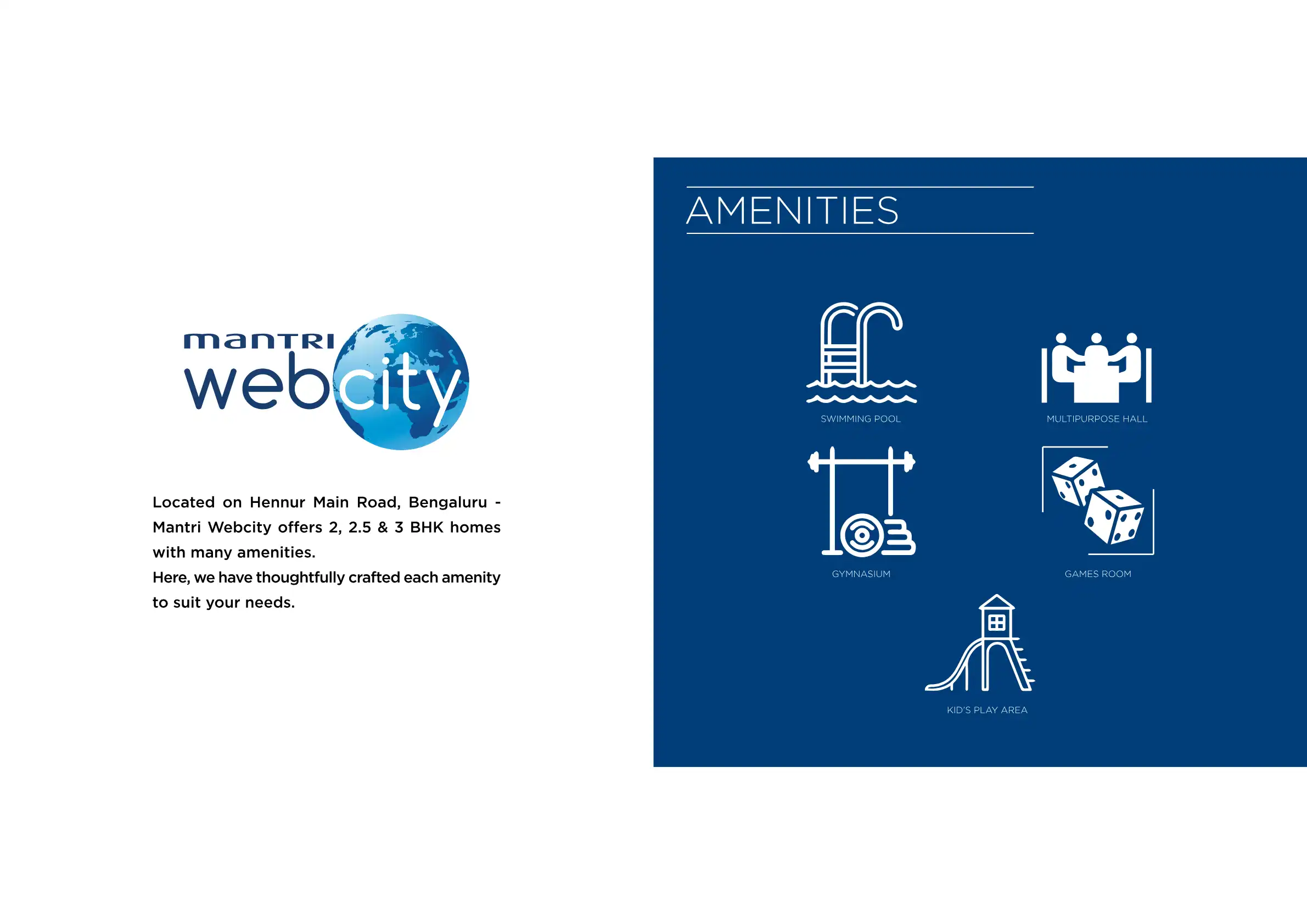 Mantri Webcity offers 2, 2.5 & 3 BHK homes with many amenities. Here, we have thoughtfully crafted each amenity to suit your needs.