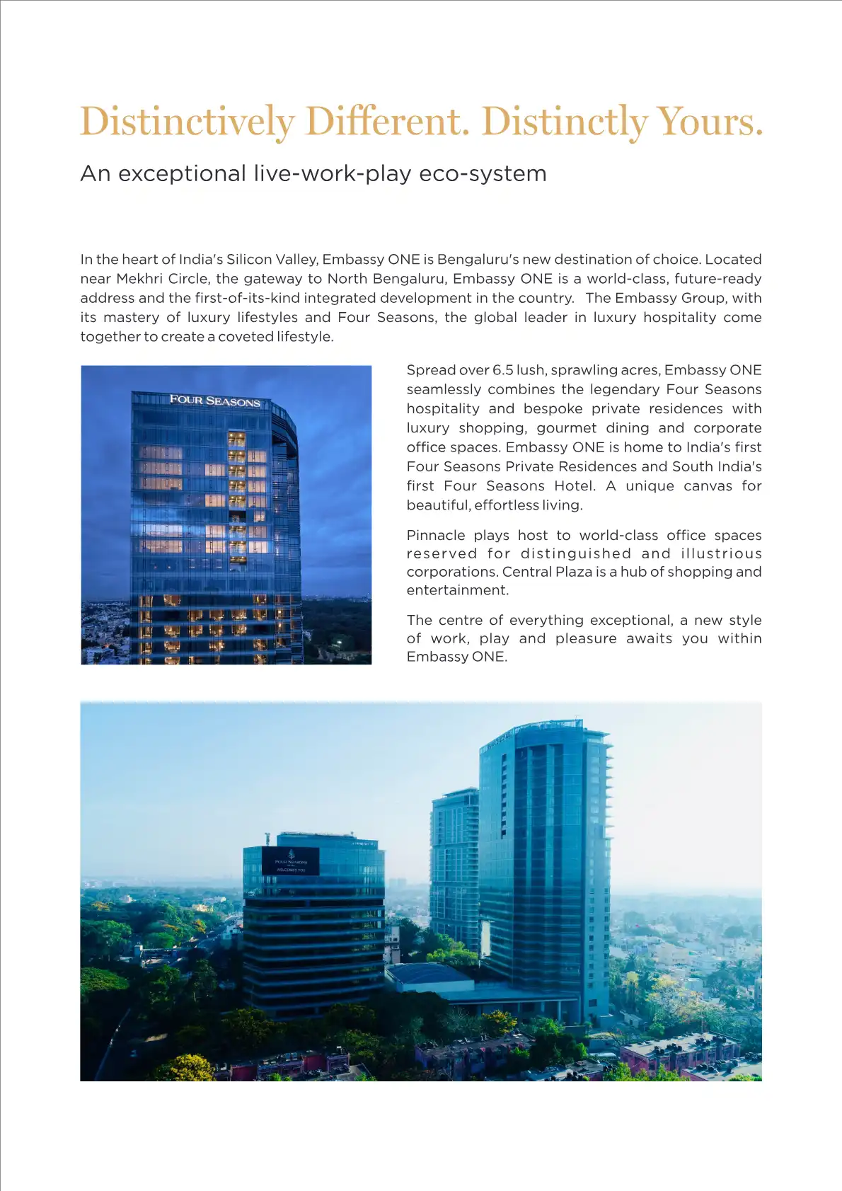 Embassy ONE is Bengaluru's new destination of choice. Located near Mekhri Circle, the gateway to North Bengaluru, Embassy ONE is a world-class, future-ready address and the first-of-its-kind integrated development in the country.