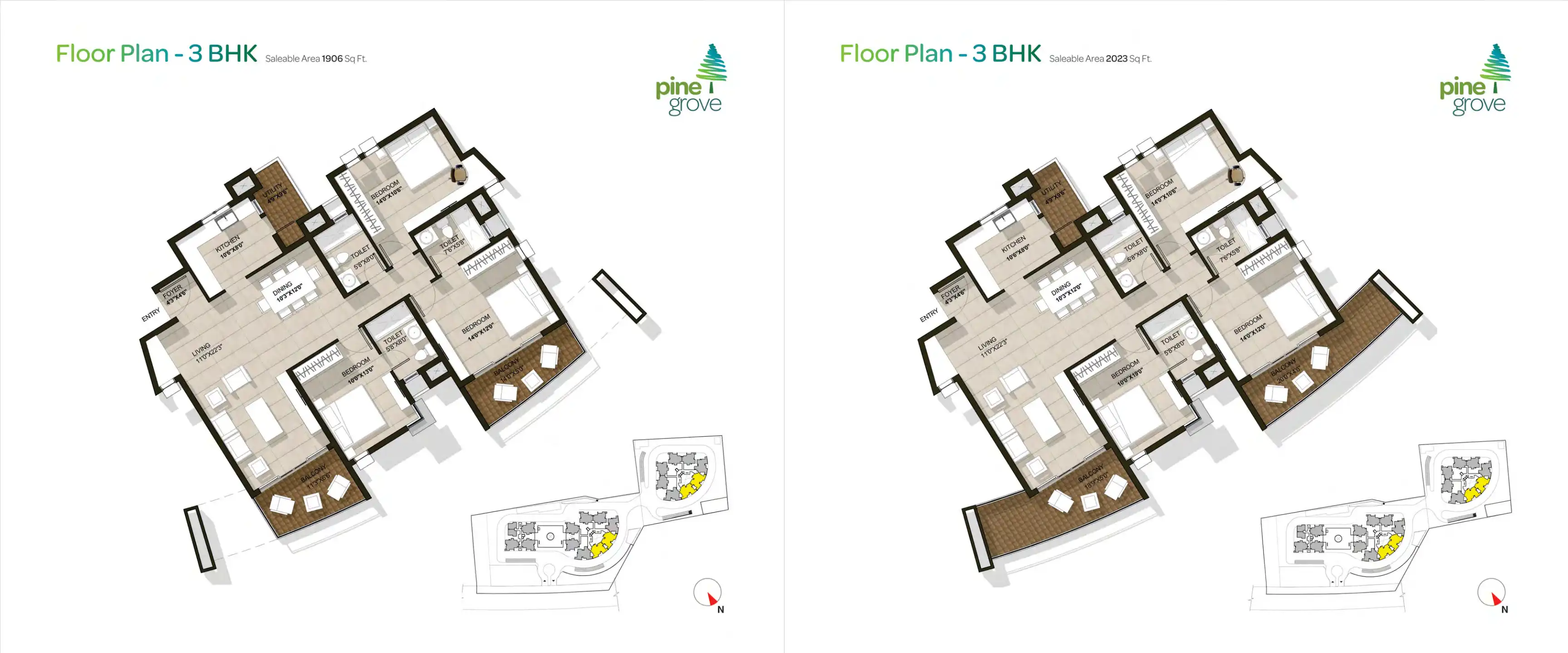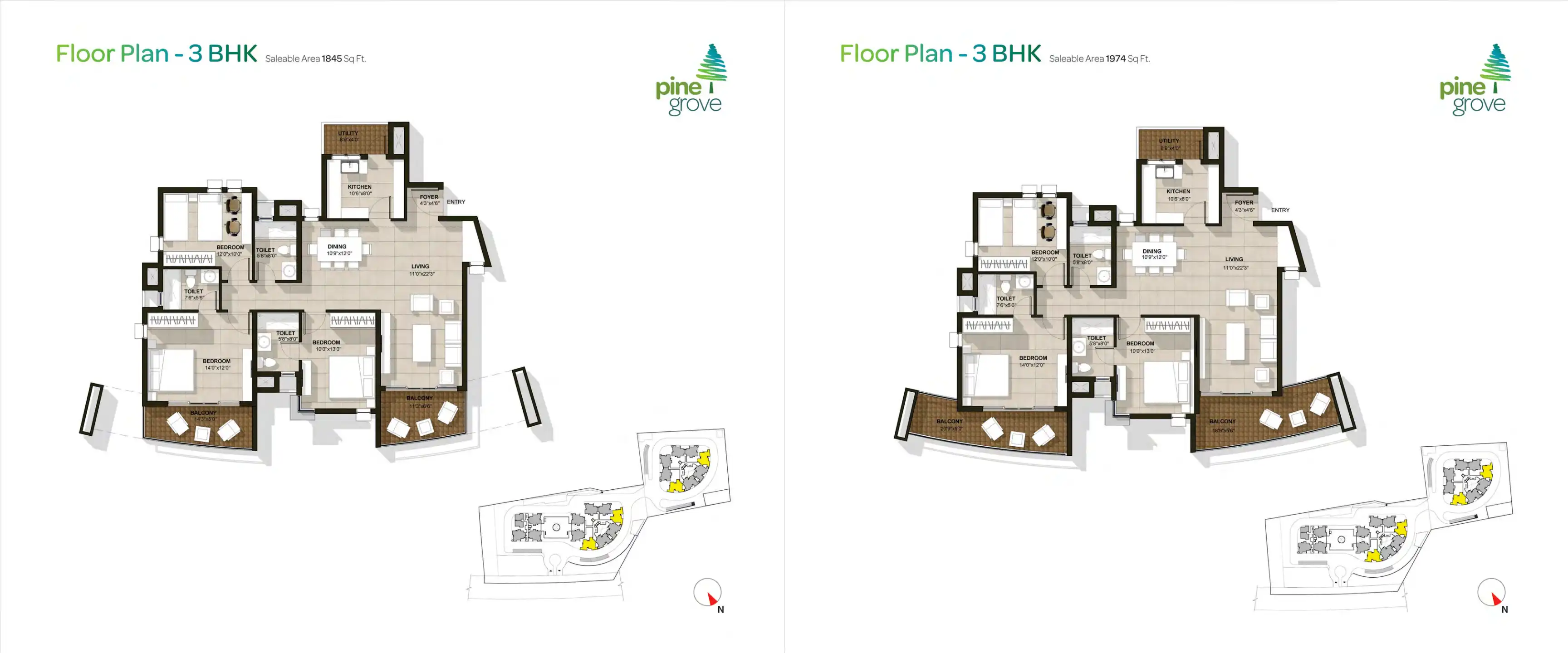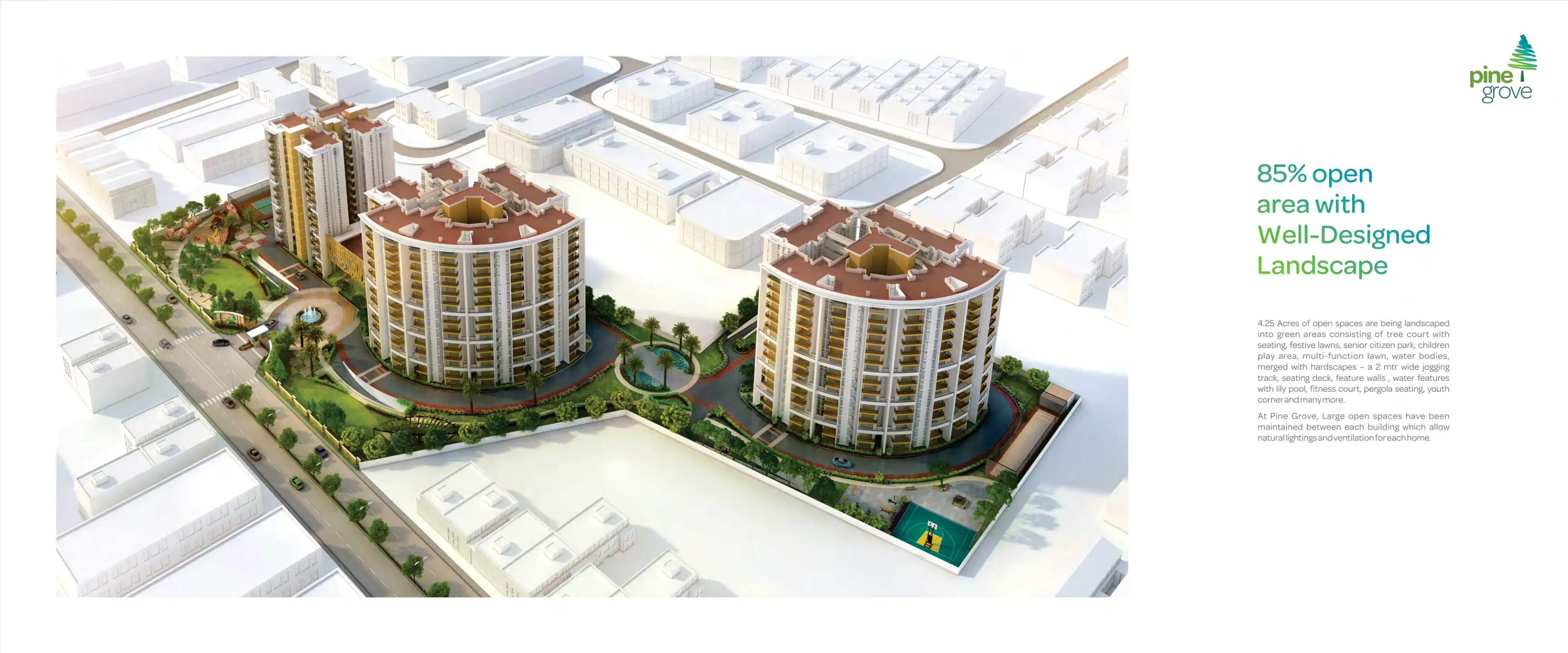 Pine Grove is designed by renowned experts to provide for a spacious living. The homes are built with well thought out spaces ranging from 1640 to 2023 sft. They come with floor to ceiling windows to compliment nature's abundance and provide great vi...