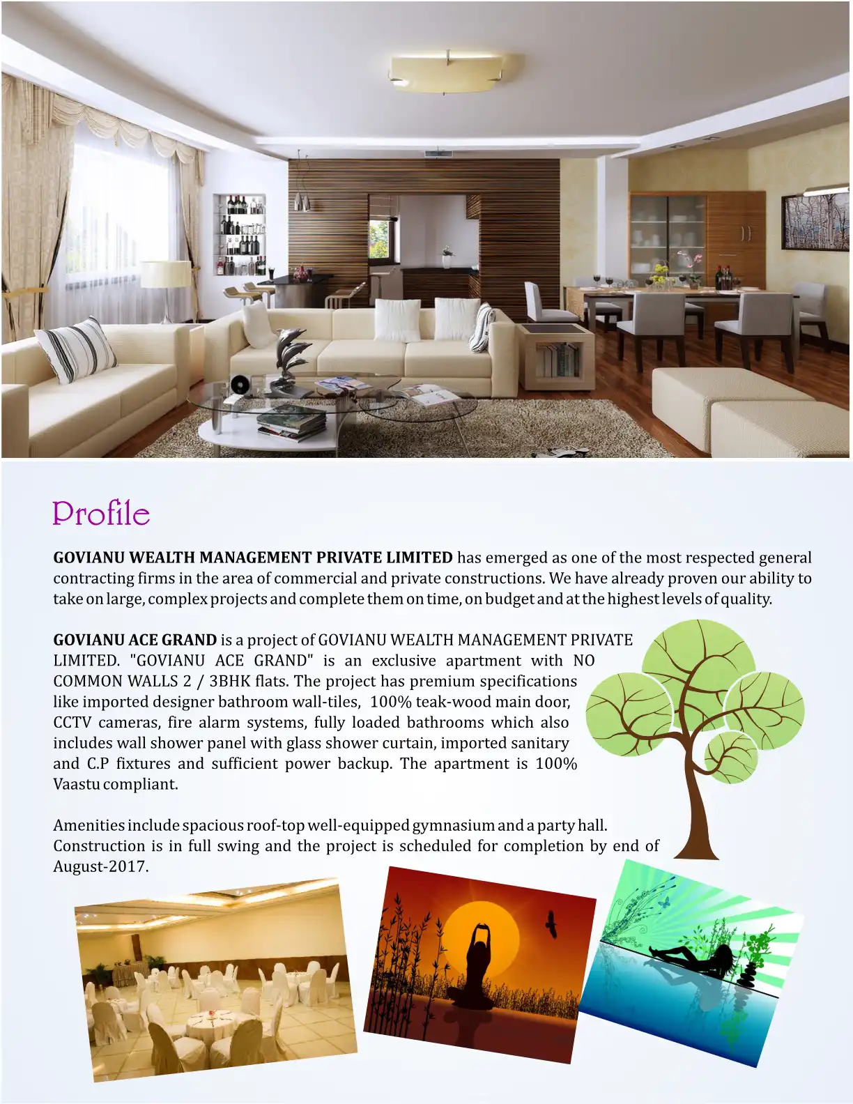 GOVIANU ACE GRAND is a project of GOVIANU WEALTH MANAGEMENT PRIVATE LIMITED. 'GOVIANU ACE GRAND' is an exclusive apartment with NO COMMON WALLS 2 / 3BHK flats. The project has premium specifications like imported designer bathroom wall-tiles, 100% te...