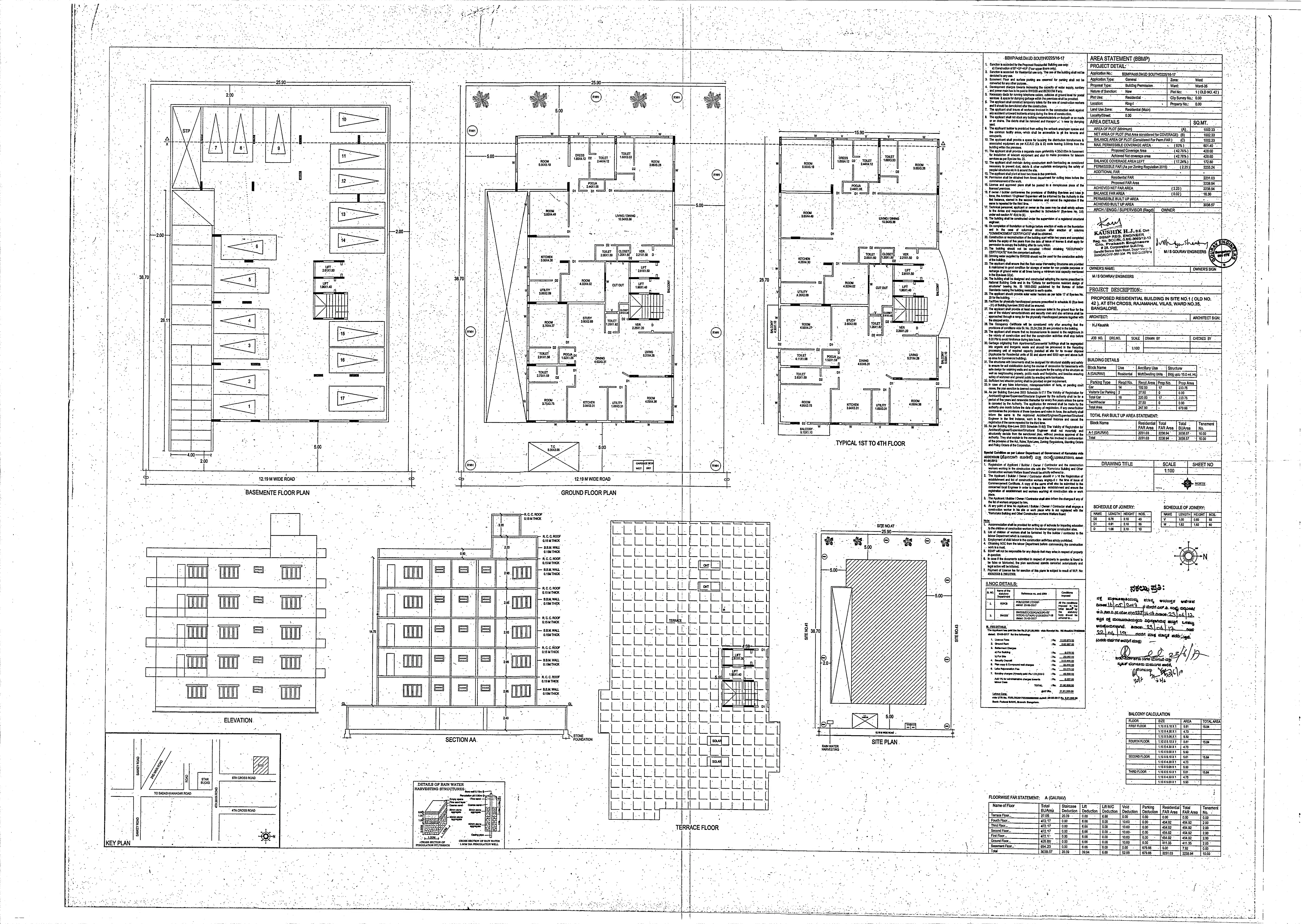 PROPOSED RESIDENTIAL BUILDING IN SITE NO.1 (OLD NO. 42), AT 5TH CROSS, RAJAMAHAL VILAS, WARD NO.35, BANGALORE.