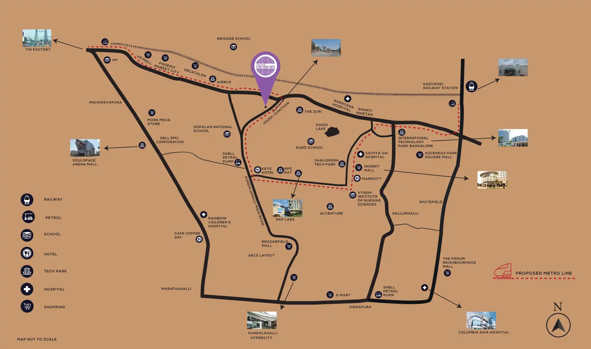 Hoodi and its vicinity are well-equipped with educational institutions like Euroschool Whitefield, Gopalan College of Engineering and Management, and Gopalan National School. For healthcare, facilities like Davita Dialysis Center Hoodi and Tooth Affair Dental Clinic in Whitefield serve the residents' medical needs.