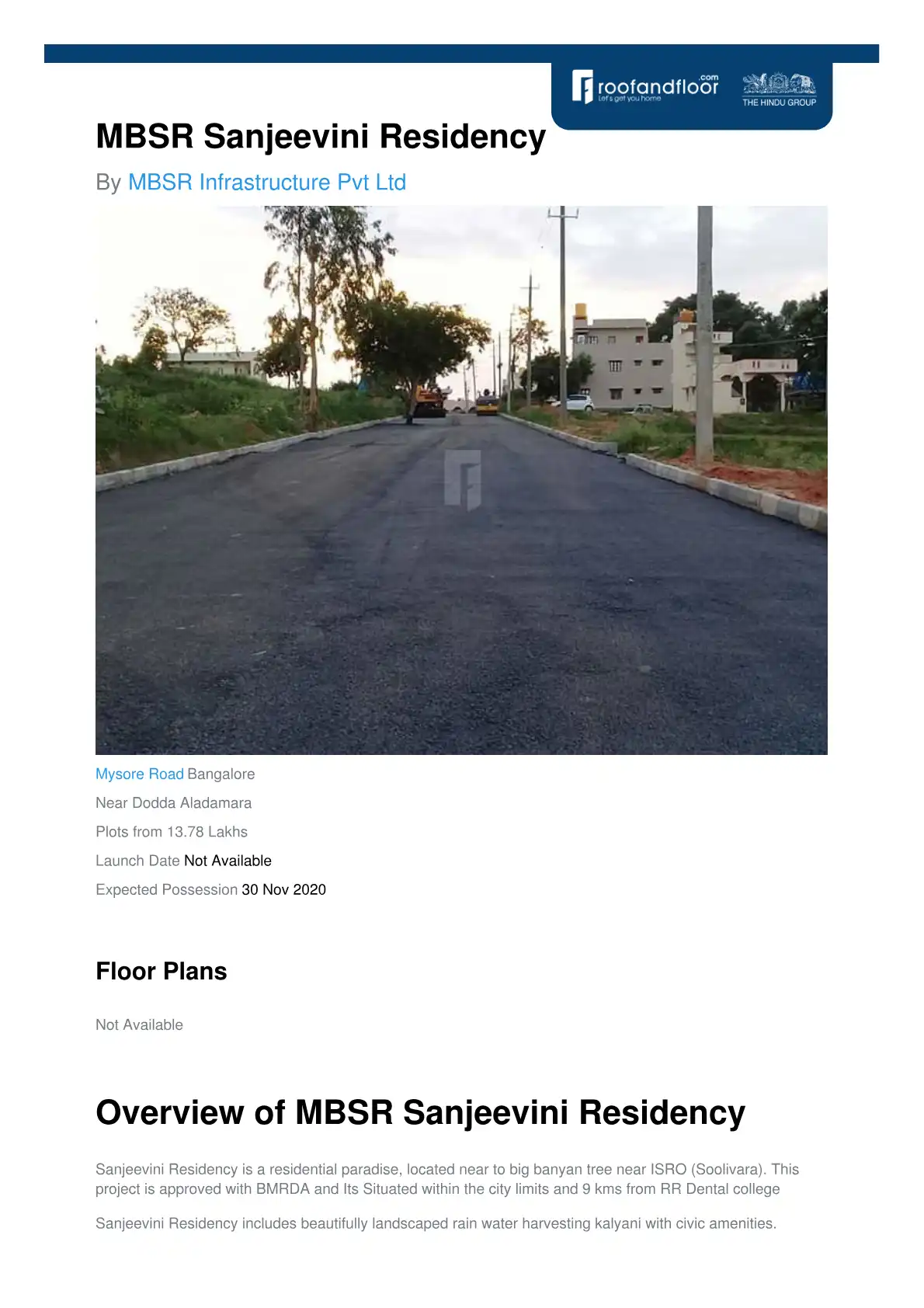 Sanjeevini Residency is a residential paradise, located near to big banyan tree near ISRO (Soolivara). This project is approved with BMRDA and Its Situated within the city limits and 9 kms from RR Dental college Sanjeevini Residency includes beautifu...
