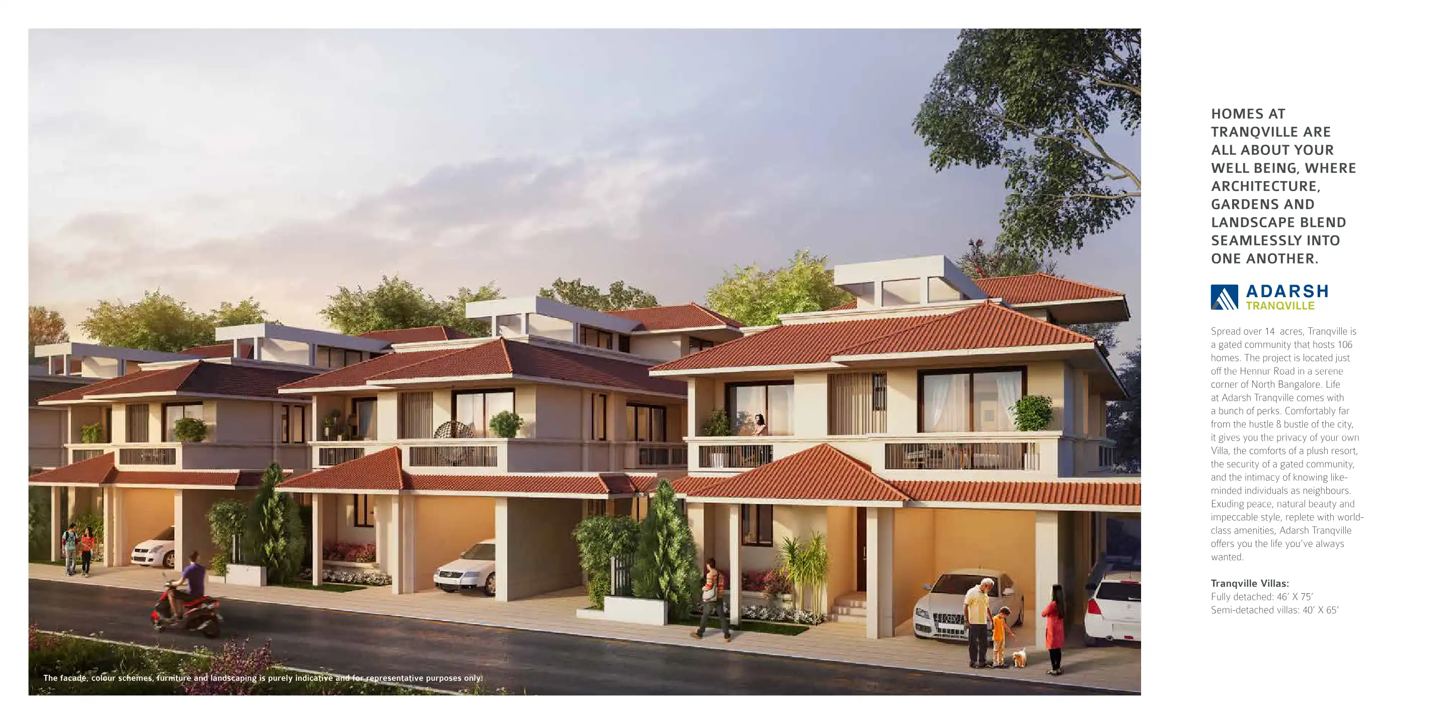 Spread over 14 acres, Tranqville is a gated community that hosts 106 homes. The project is located just off the Hennur Road in a serene corner of North Bangalore.