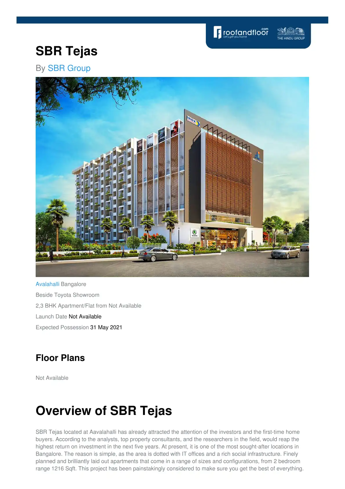 SBR Tejas located at Aavalahalli has already attracted the attention of the investors and the first-time home buyers. According to the analysts, top property consultants, and the researchers in the field, would reap the highest return on investment i...