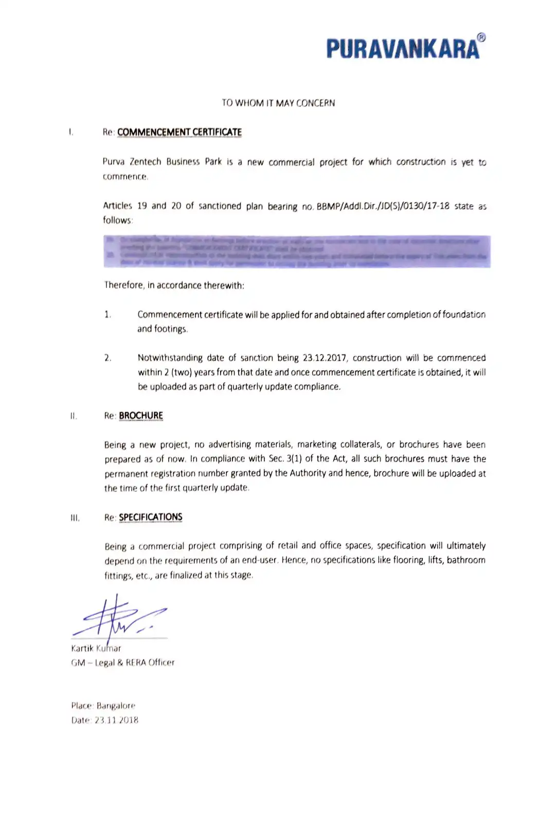 Purva Zentech Business Park is a new commercial project.