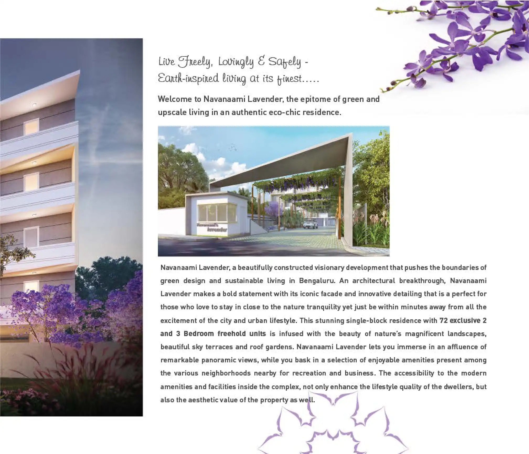 Navanaami Lavender, a beautifully constructed visionary development that pushes the boundaries of green design and sustainable living in Bengaluru. An architectural breakthrough, Navanaami Lavender makes a bold statement with its iconic facade and in...