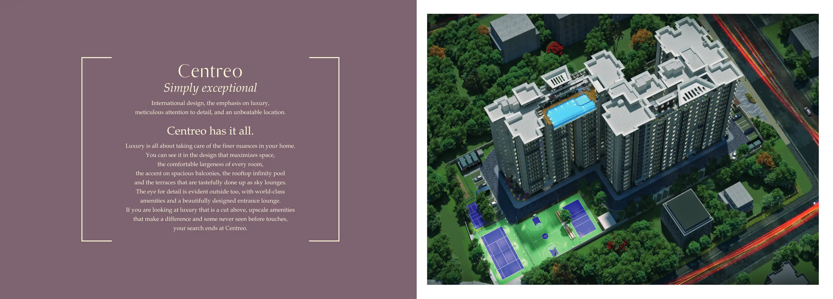 Centreo has it all. Luxury is all about taking care of the finer nuances in your home. You can see it in the design that maximizes space, the comfortable largeness of every room, the accent on spacious balconies, the rooftop infinity pool and the ter...