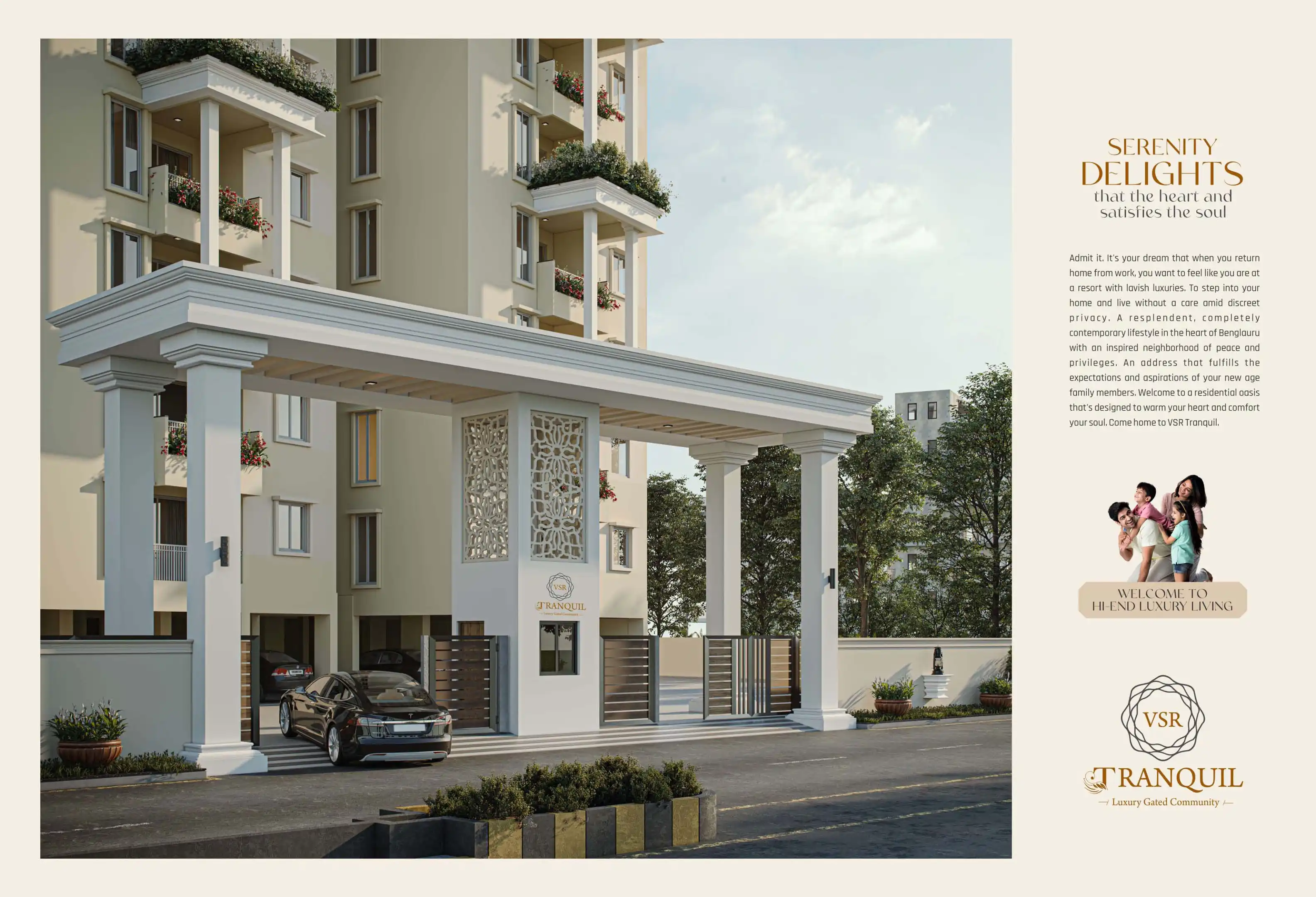 VSR Tranquil offers 2/3/4 BHK Luxury gated community apartments located at Horamavu Main Road, North Bengaluru. It features world class amenities for all age groups.