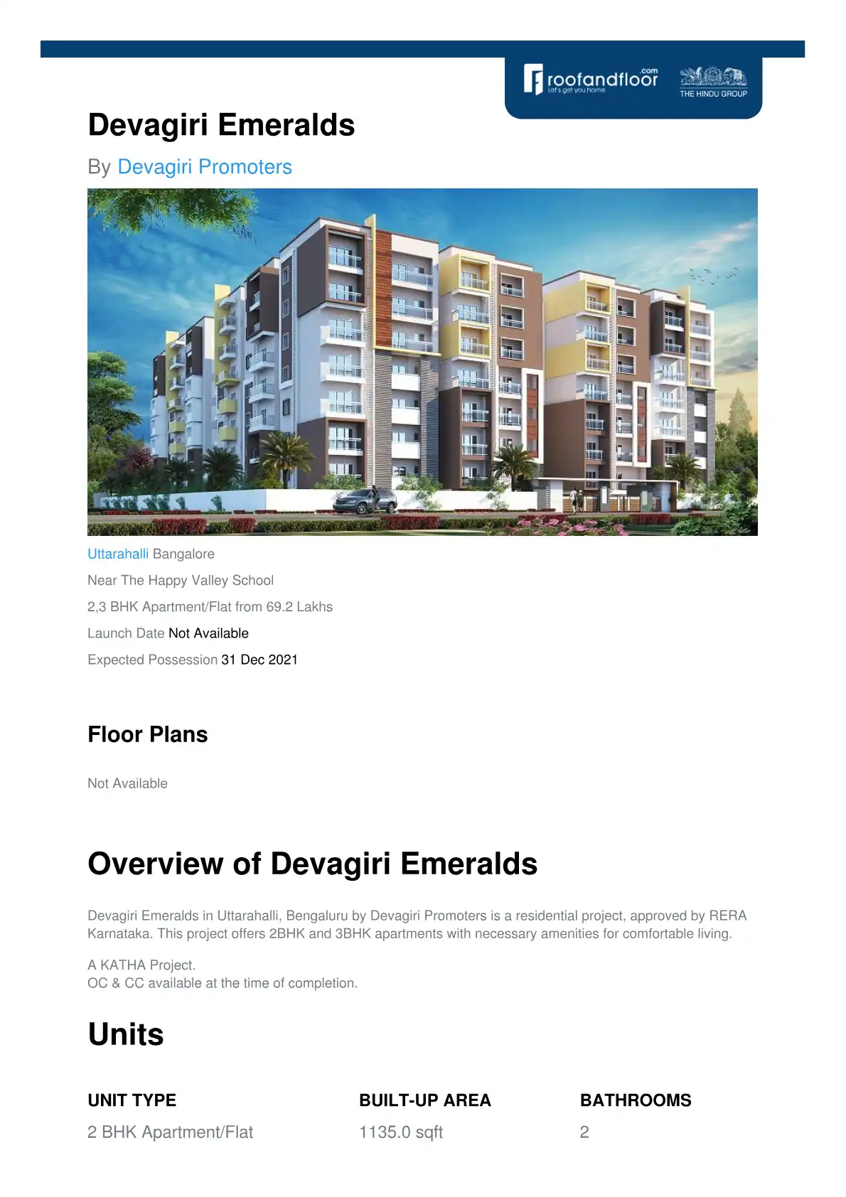 Devagiri Emeralds in Uttarahalli, Bengaluru by Devagiri Promoters is a residential project, approved by RERA Karnataka. This project offers 2BHK and 3BHK apartments with necessary amenities for comfortable living. A KATHA Project. OC & CC available a...