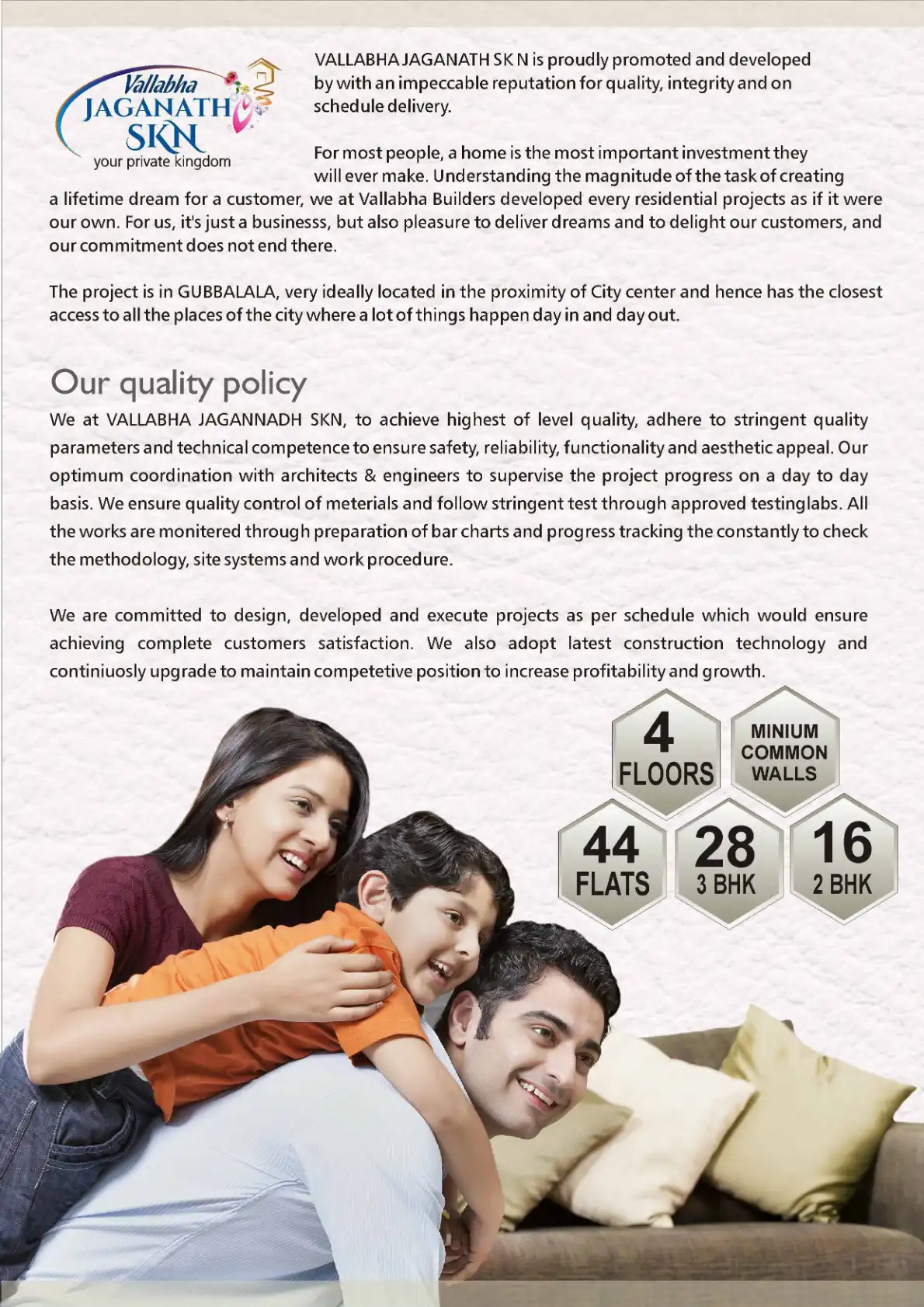 VALLABHA JAGANATH SK N is proudly promoted and developed by with an impeccable reputation for quality, integrity and on schedule delivery.