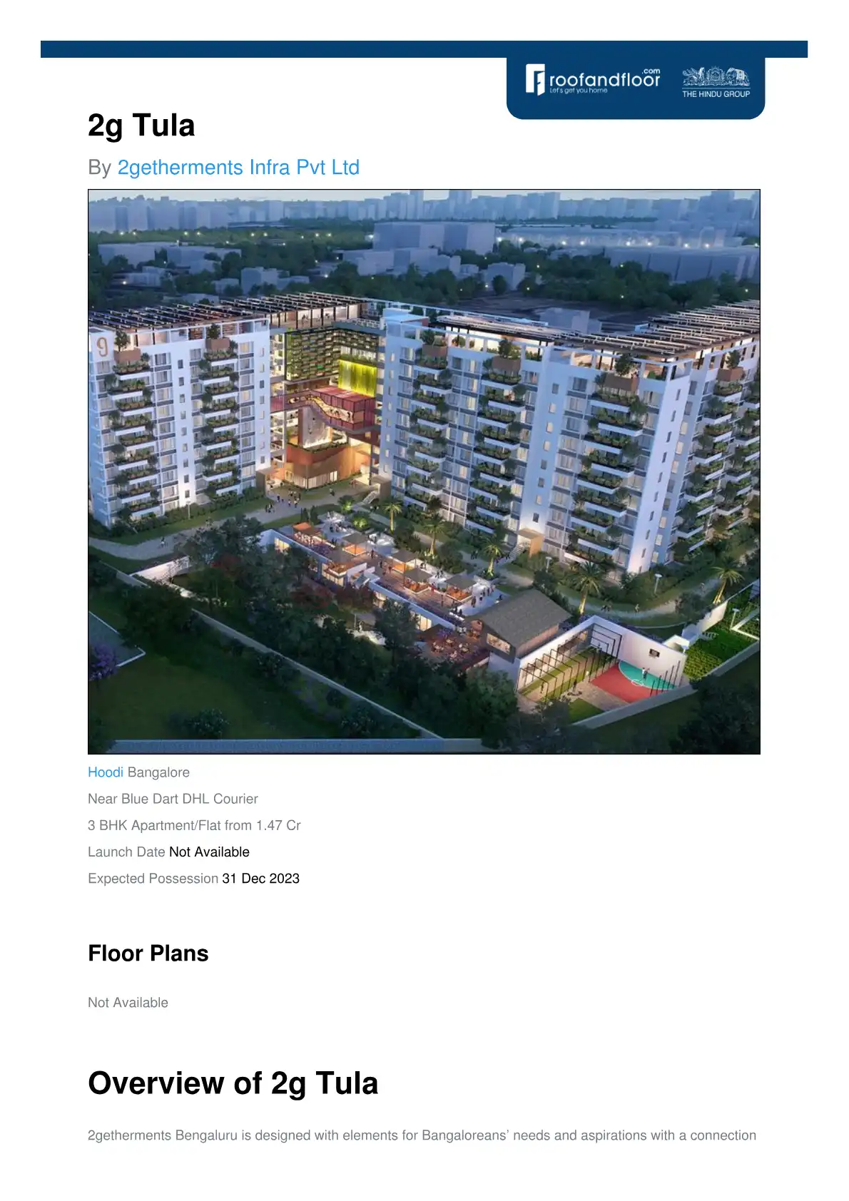 2getherments Bengaluru is designed with elements for Bangaloreans' needs and aspirations with a connection to their culture. Located in Hoodi, the prime locality of Bengaluru, just a few kilometers away from ITPL.