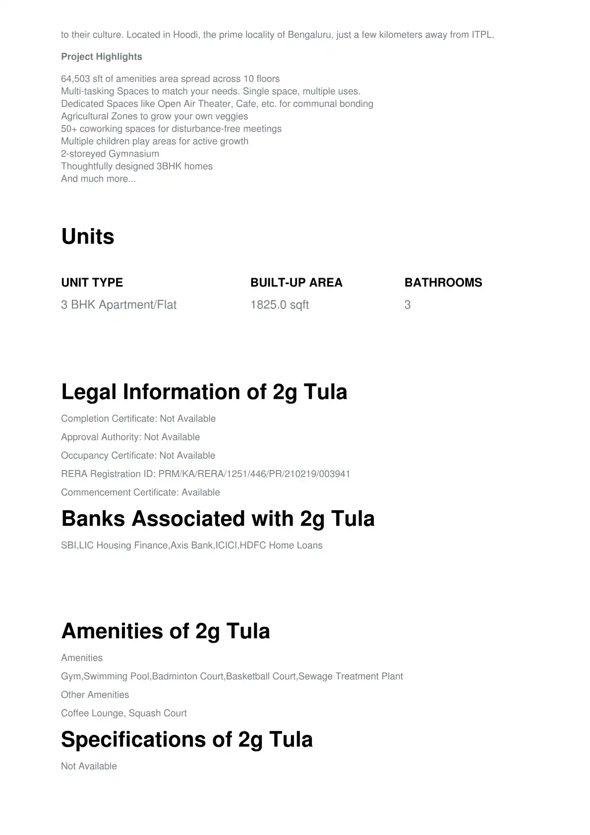 The locality features a robust social infrastructure, including reputable educational institutions like SEA College of Science, Commerce and Arts, Gopalan College of Engineering, and Euroschool Whitefield. Healthcare needs are met by facilities such as Unique Smiles Dental Care and Davita Dialysis Center, ensuring a comfortable living environment.