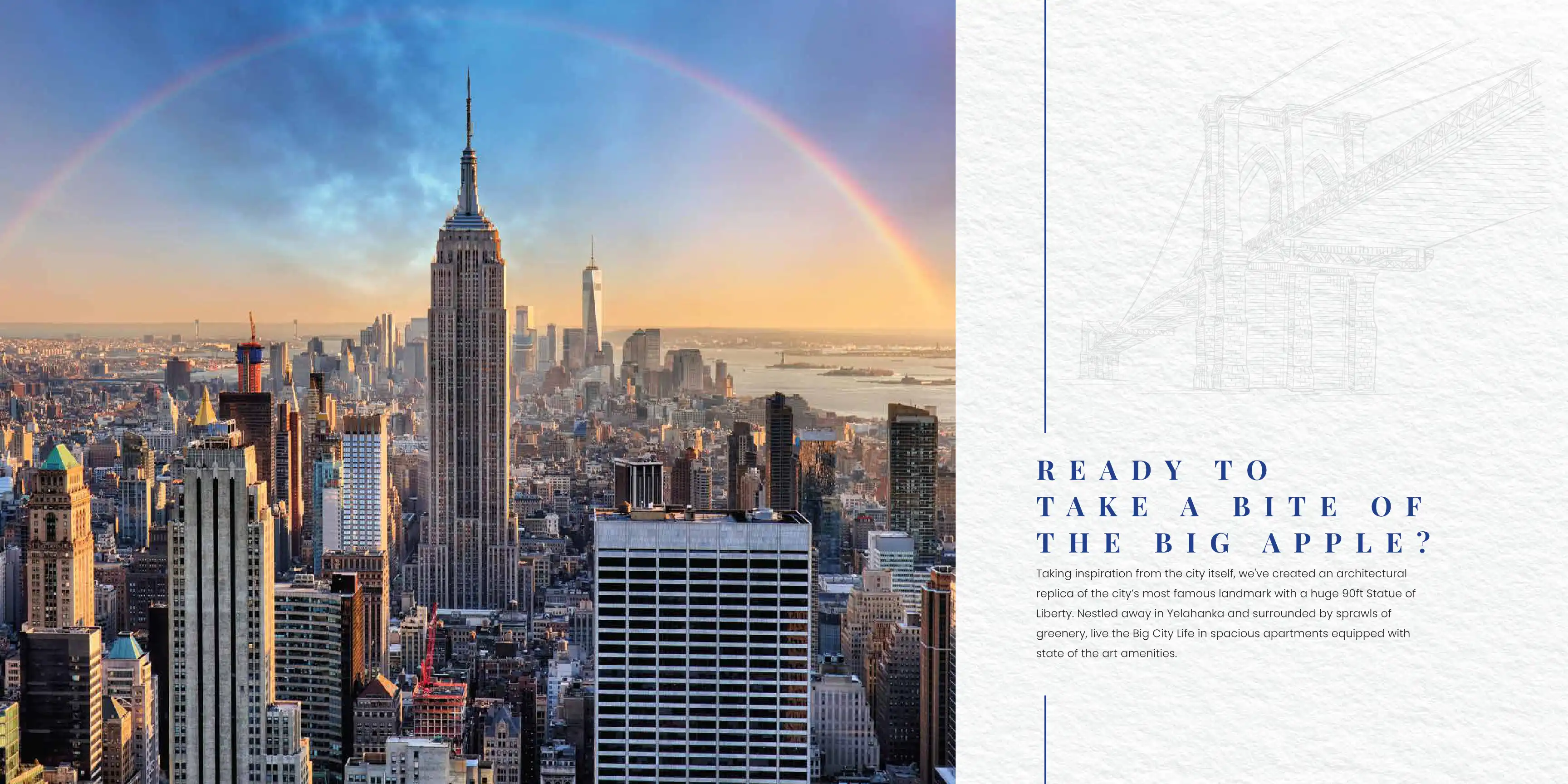 Taking inspiration from the city itself, we've created an architectural replica of the city's most famous landmark with a huge 90ft Statue of Liberty. Nestled away in Yelahanka and surrounded by sprawls of greenery, live the Big City Life in spacious...