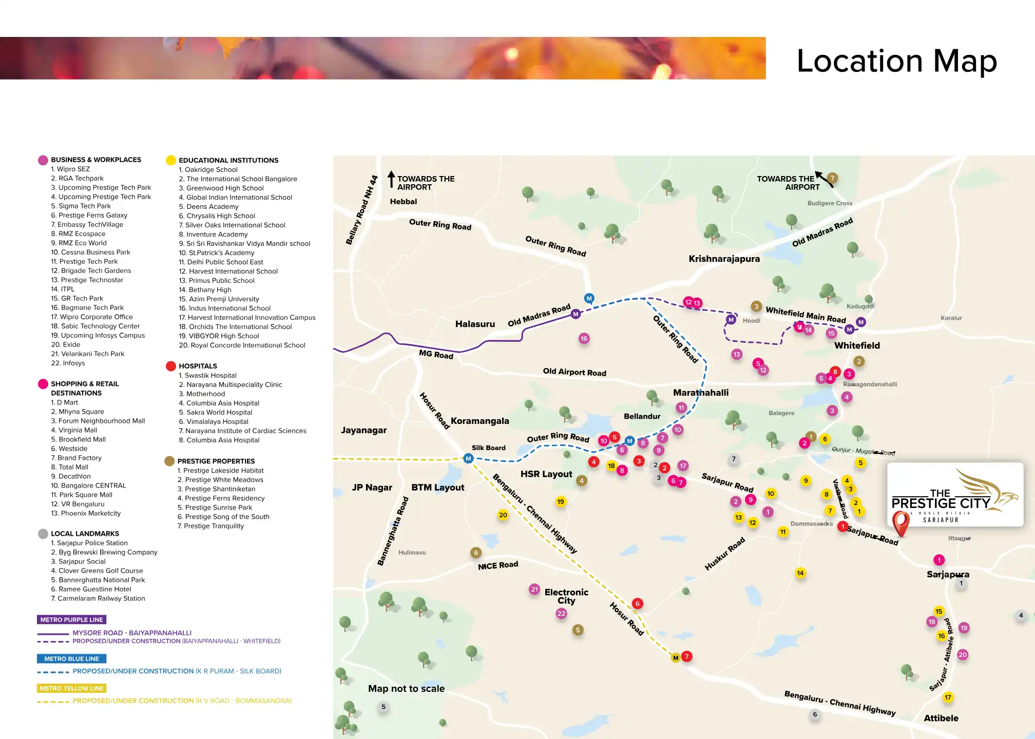 Varthur-Sarjapur Road is a hub for premium residential developments. Notable projects include The Prestige City by Prestige Group, offering 3 & 4 BHK flats, and Brigade Sanctuary by Brigade in Dommasandra, featuring 1 & 3 BHK apartments. Other significant developments include Godrej 24 and plotted communities like Prestige Great Acres and Confident Beverly Hills, providing diverse housing choices.