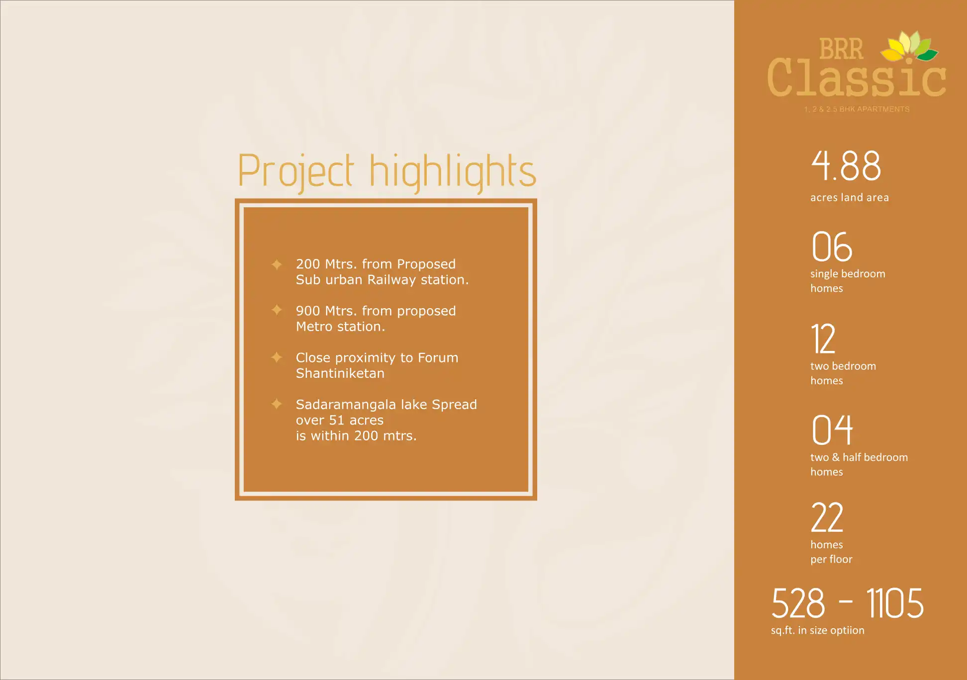 BRR Classic offers 1, 2 & 2.5 BHK apartments in Hoodi, Bengaluru. The homes are designed for ample natural light and ventilation. Living at BRR Classic is an exciting experience.