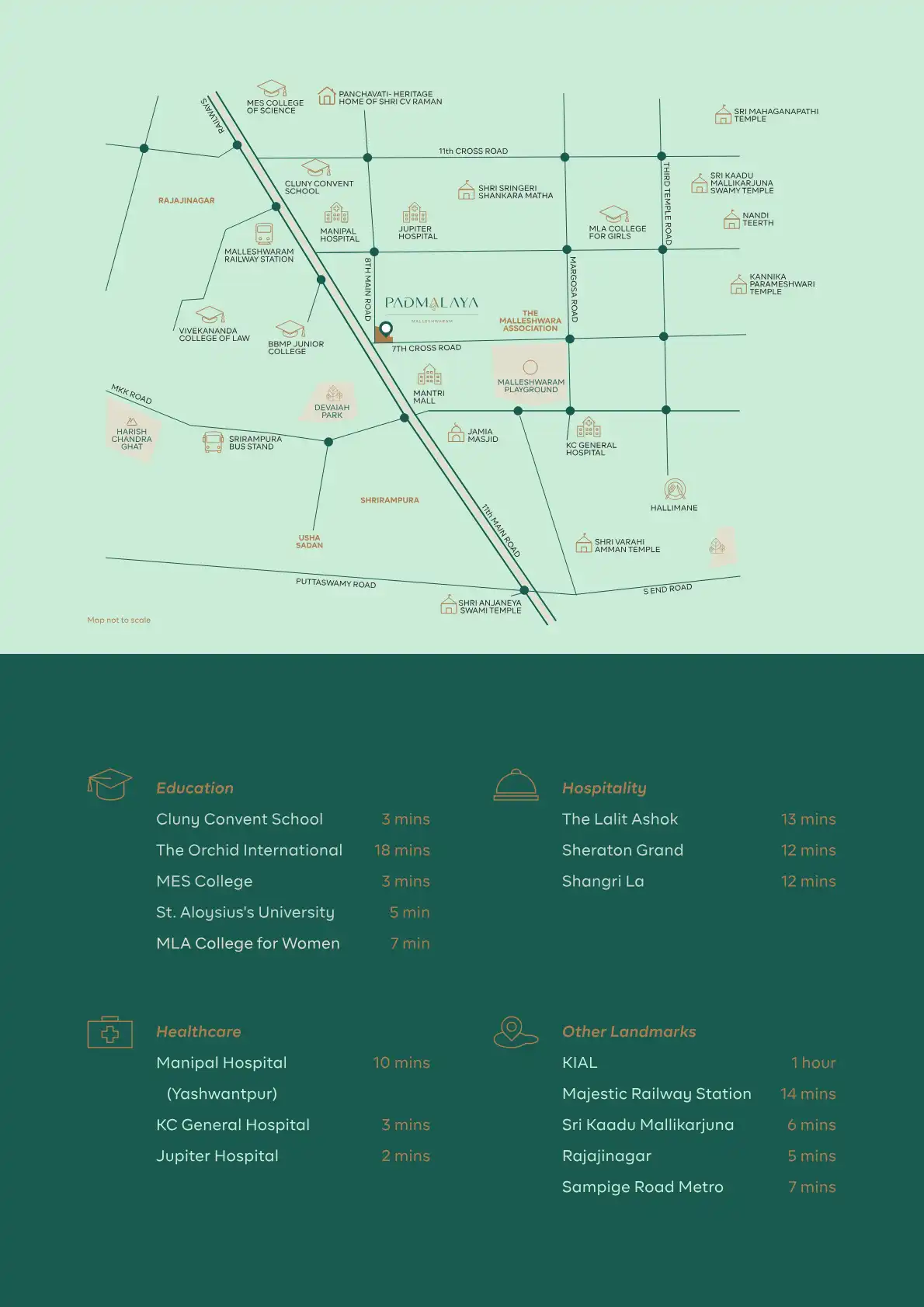 The area is well-equipped with reputable educational institutions such as Jain Deemed-to-be University, Al-Ameen College of Pharmacy, and St. Joseph's College of Arts and Science. For healthcare, residents have access to leading facilities like HCG Cancer Hospital, Victoria Hospital, and the Kidney Institute, ensuring comprehensive medical services.
