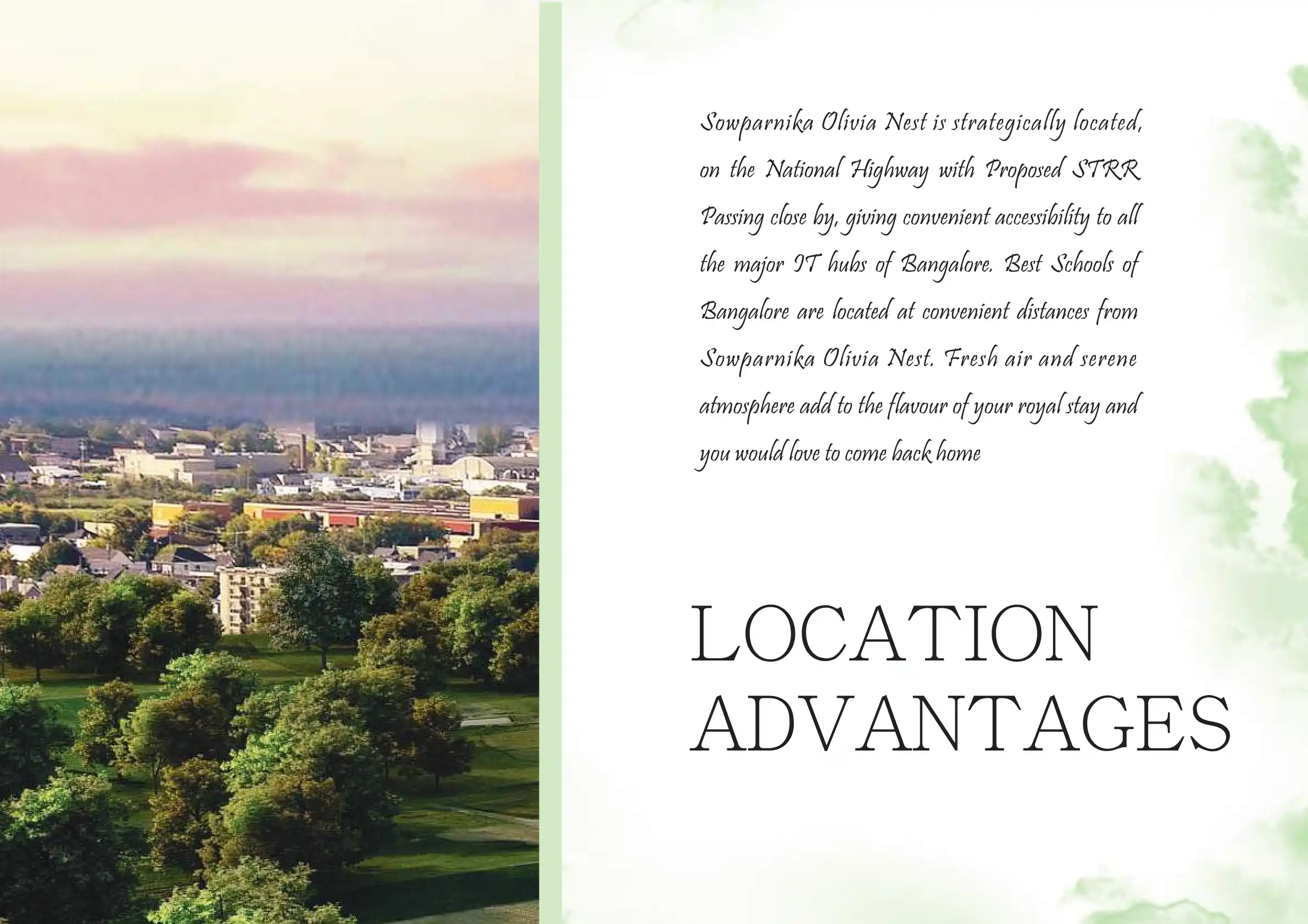 Olivia Nest FROM SOWPARNIKA With over 7500 satisfied customers and 50+ completed Projects spread across 3 states, we are recognized as a leading realtor in south India. We have 35+ ongoing projects and what drives us is our mission of “homes for ever...