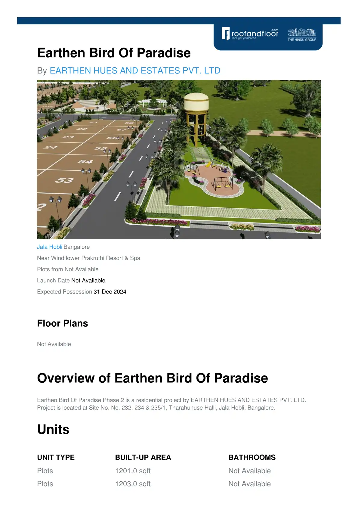 Earthen Bird Of Paradise Phase 2 is a residential project by EARTHEN HUES AND ESTATES PVT. LTD. Project is located at Site No. No. 232, 234 & 235/1, Tharahunuse Halli, Jala Hobli, Bangalore.
