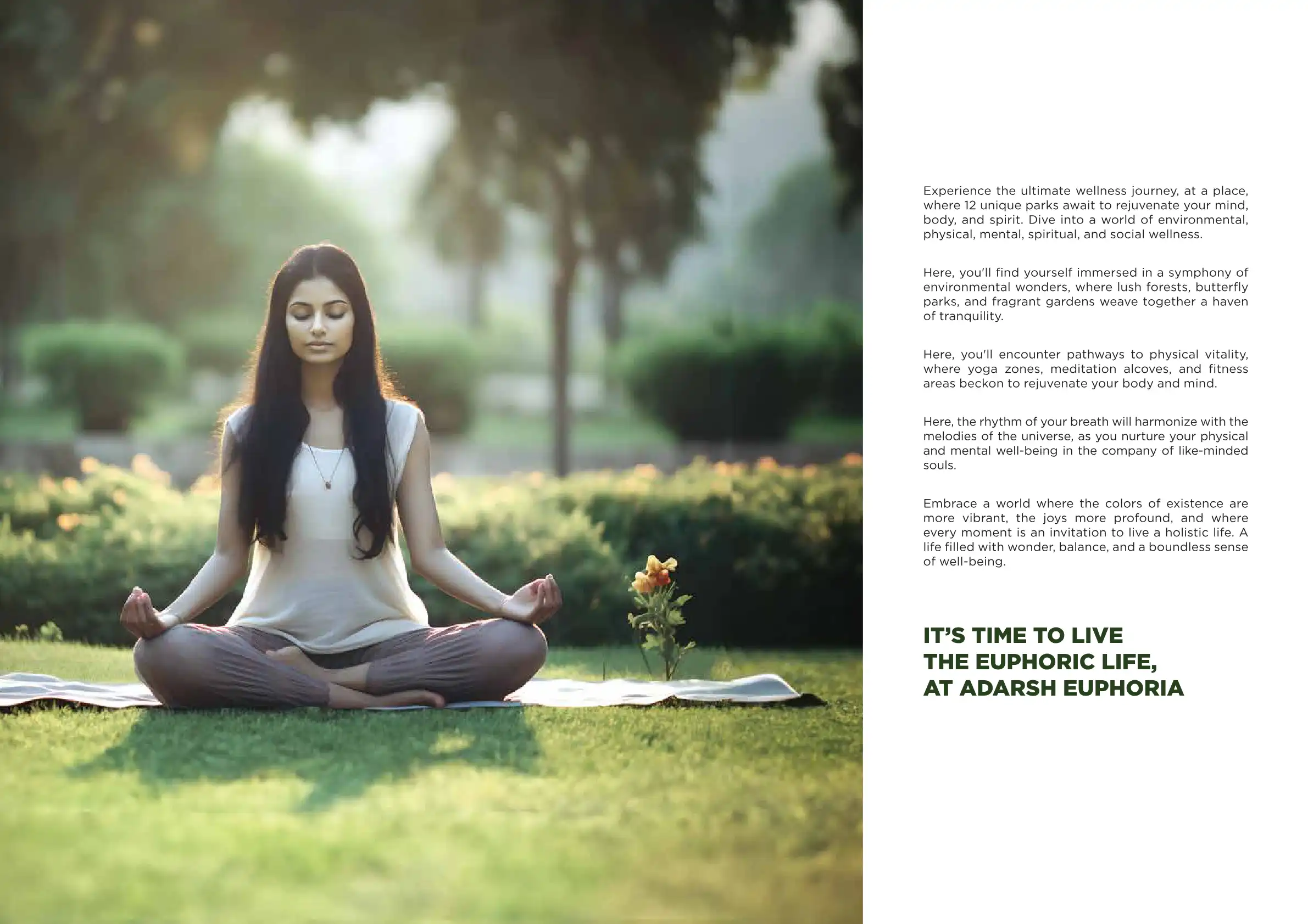 Adarsh euphoria is a plotted development project with 12 wellness parks, yoga zones, meditation alcoves, and fitness areas.