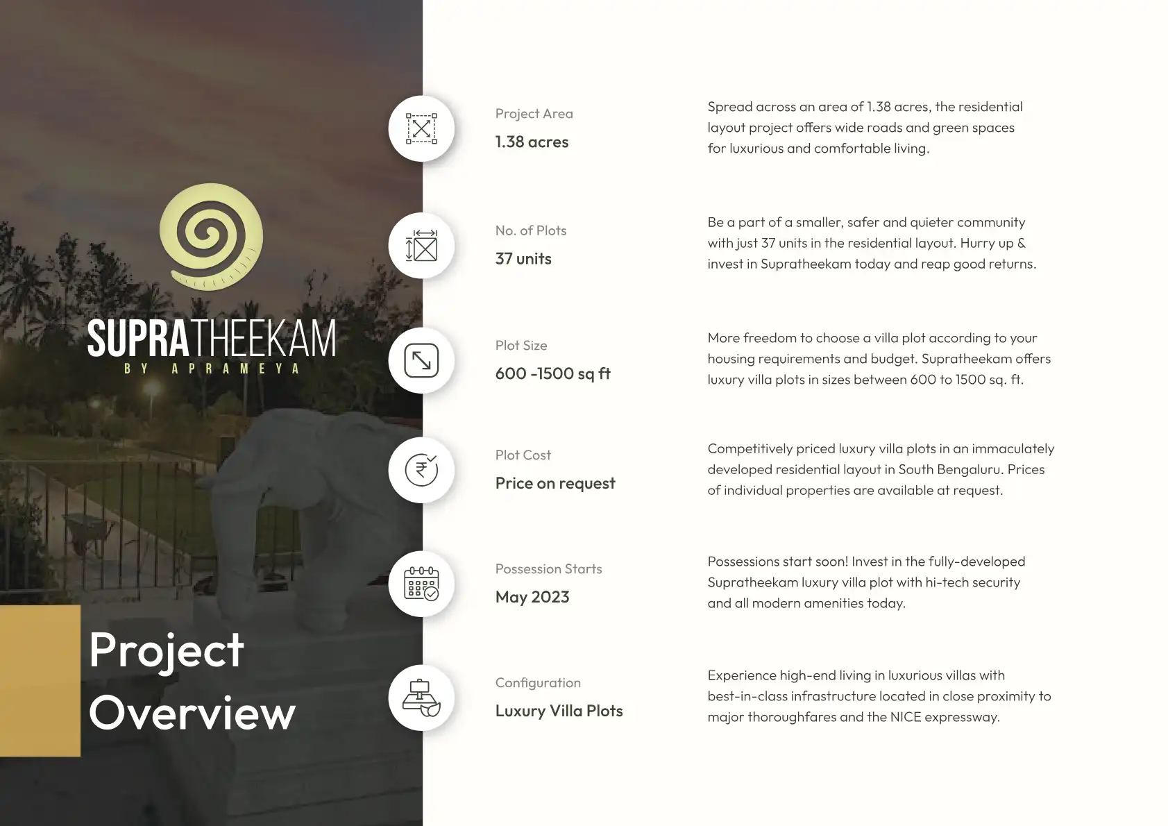 Supratheekam offers luxury villa plots in sizes between 600 to 1500 sq. ft.
