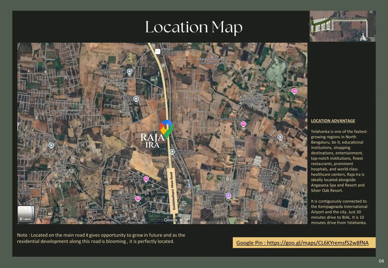 Rajanukunte enjoys good connectivity primarily via Doddaballapur Road and Yelahanka-Doddaballapur Road. It provides easy access to Yelahanka, Kempegowda International Airport, and other major hubs through a network of roads. Public transport options, including BMTC buses, are available, enhancing commuting convenience.