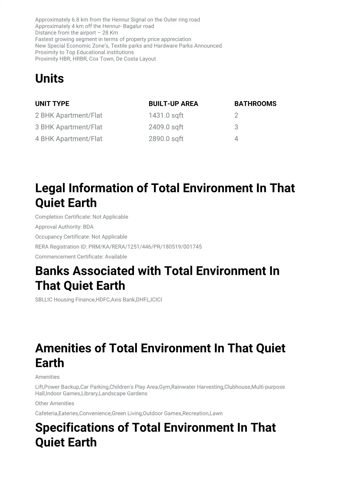 Total Environment In That Quiet Earth is the brand new creation by the reputed real estate builder Total Environment. The accomplished architectonics in this project is being done by using the latest technologies and hence, is considered to be the mo...