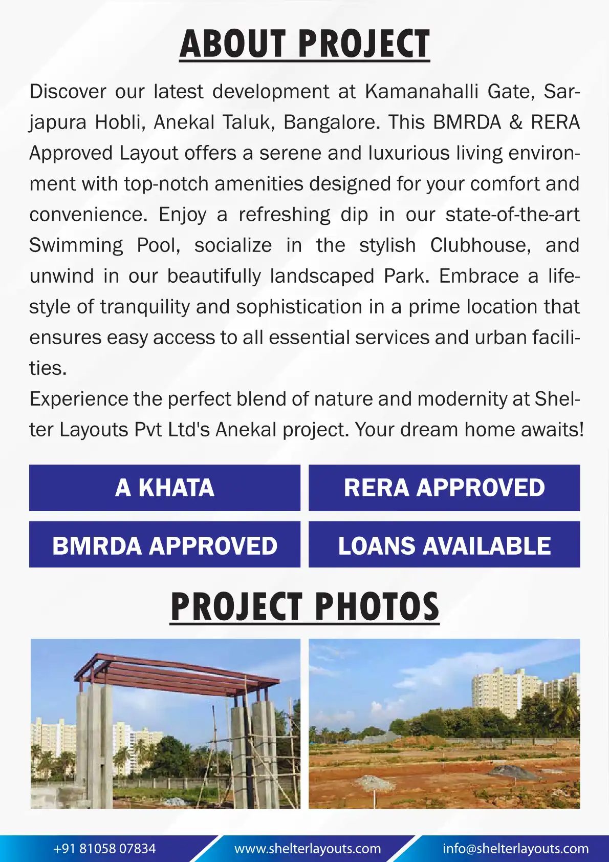 Discover our latest development at Kamanahalli Gate, Sar-japura Hobli, Anekal Taluk, Bangalore. This BMRDA & RERA Approved Layout offers a serene and luxurious living environment with top-notch amenities designed for your comfort and convenience. Enj...
