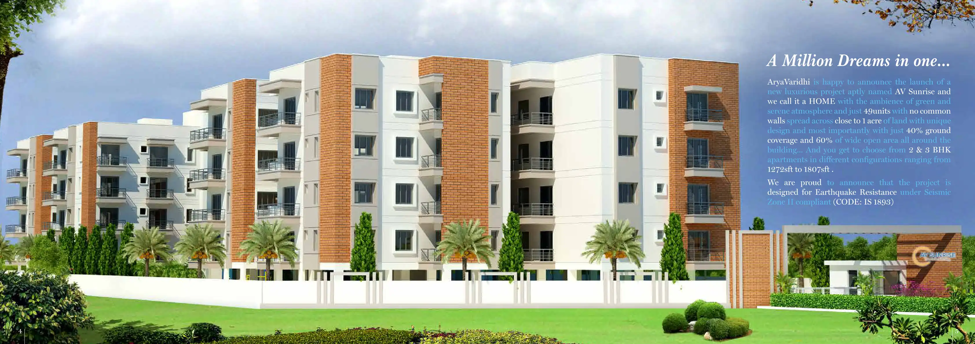 AV Sunrise and we call it a HOME with the ambience of green and serene atmosphere and just 49units with no common walls spread across close to 1 acre of land with unique design and most importantly with just 40% ground coverage and 60% of wide open a...
