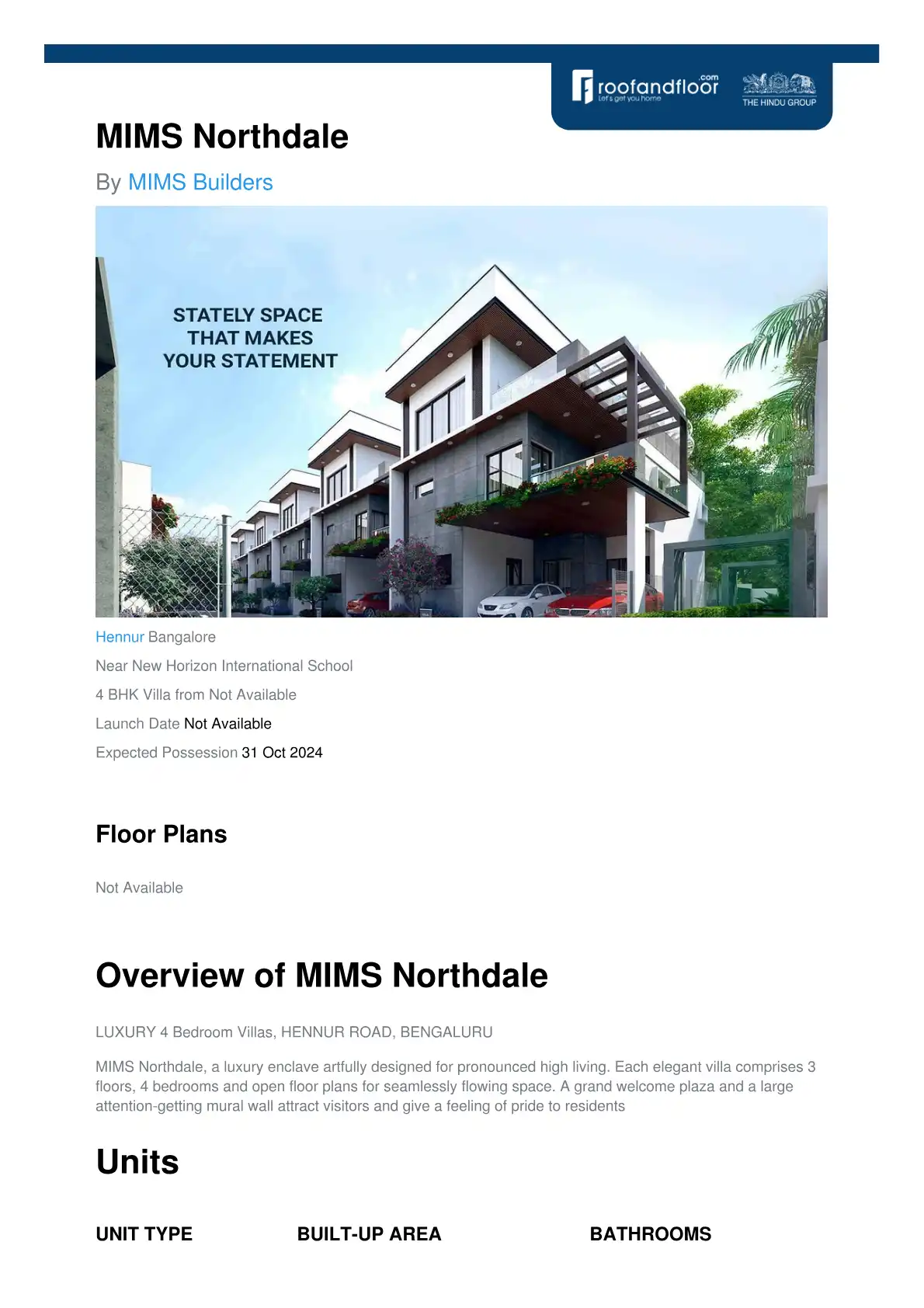 MIMS Northdale - 4 BHK Villas on New Airport Road, Bangalore | PropHunt | PropHunt