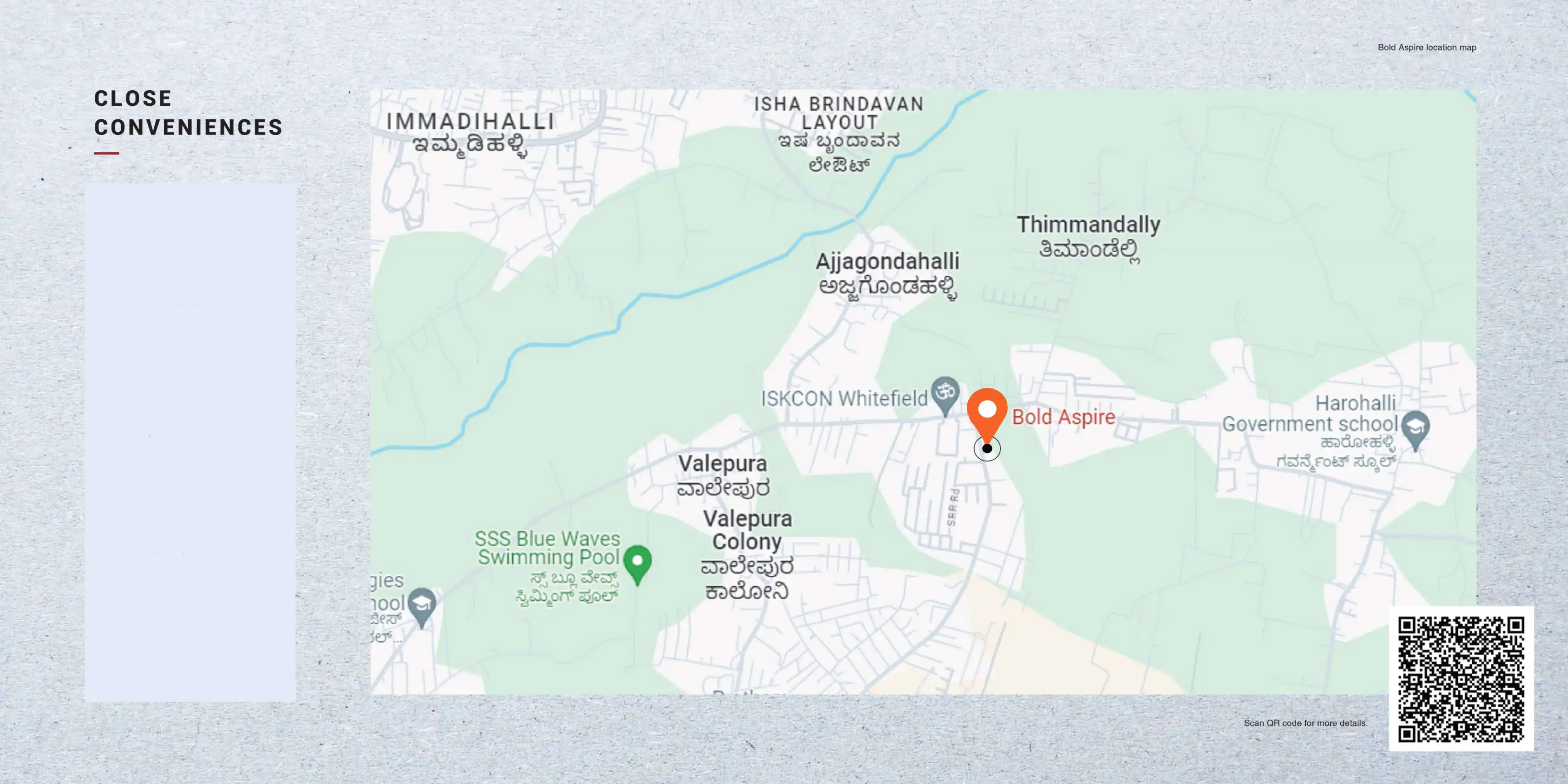 The locality offers a robust social infrastructure. Educational institutions like MVJ College of Engineering, Government Polytechnic College Whitefield, and Deeksha Vedantu Whitefield are nearby. Healthcare needs are met by facilities such as Dr. R. Munisingh Hospital. Residents also have easy access to a variety of shopping centers, supermarkets, and entertainment hubs located in the adjacent Whitefield area, ensuring a comfortable lifestyle.