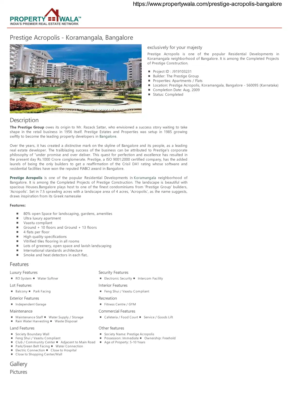 Prestige Acropolis is one of the popular Residential Developments in Koramangala neighborhood of Bangalore. It is among the Completed Projects of Prestige Construction. The landscape is beautiful with spacious Houses. Bangalore plays host to one of t...