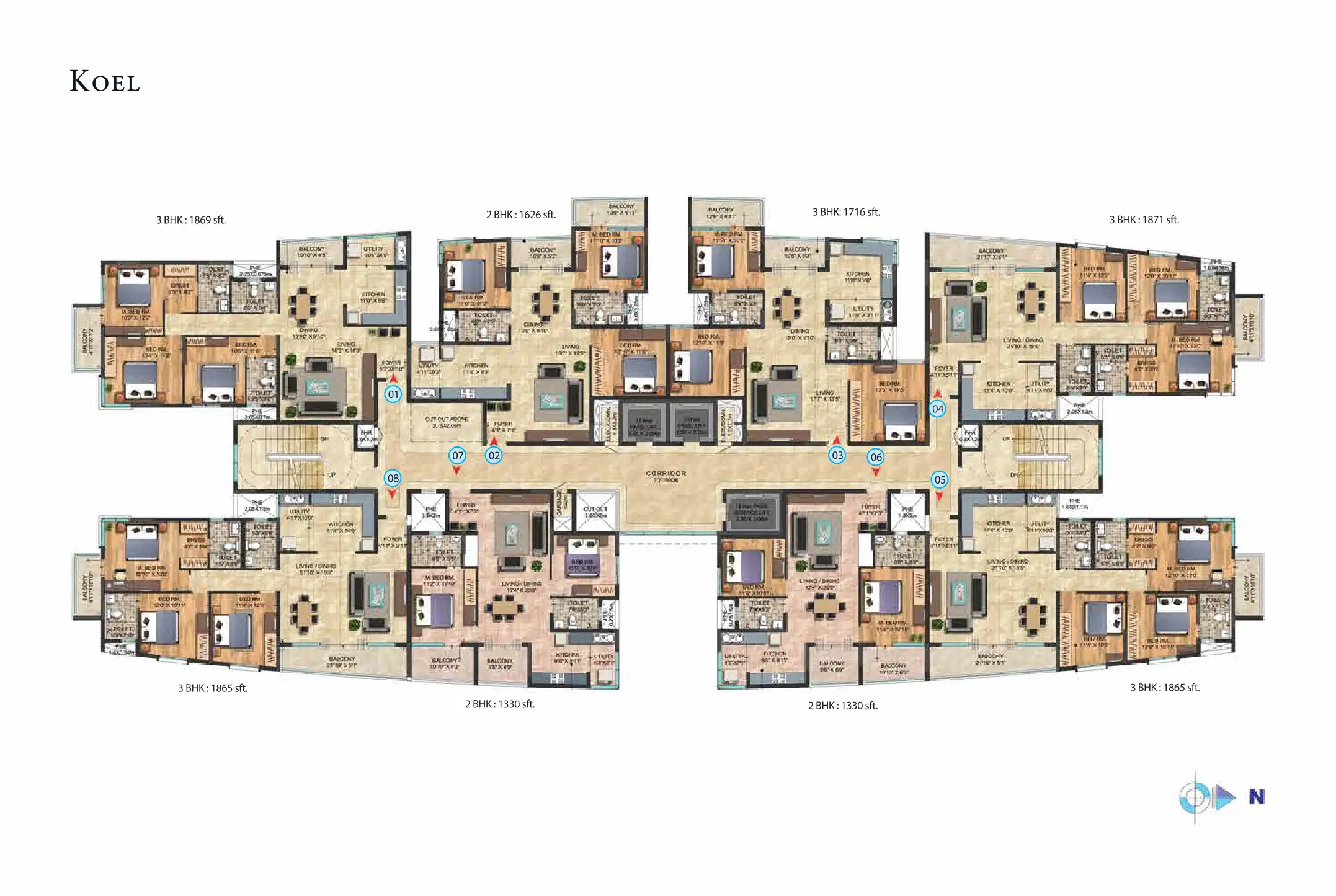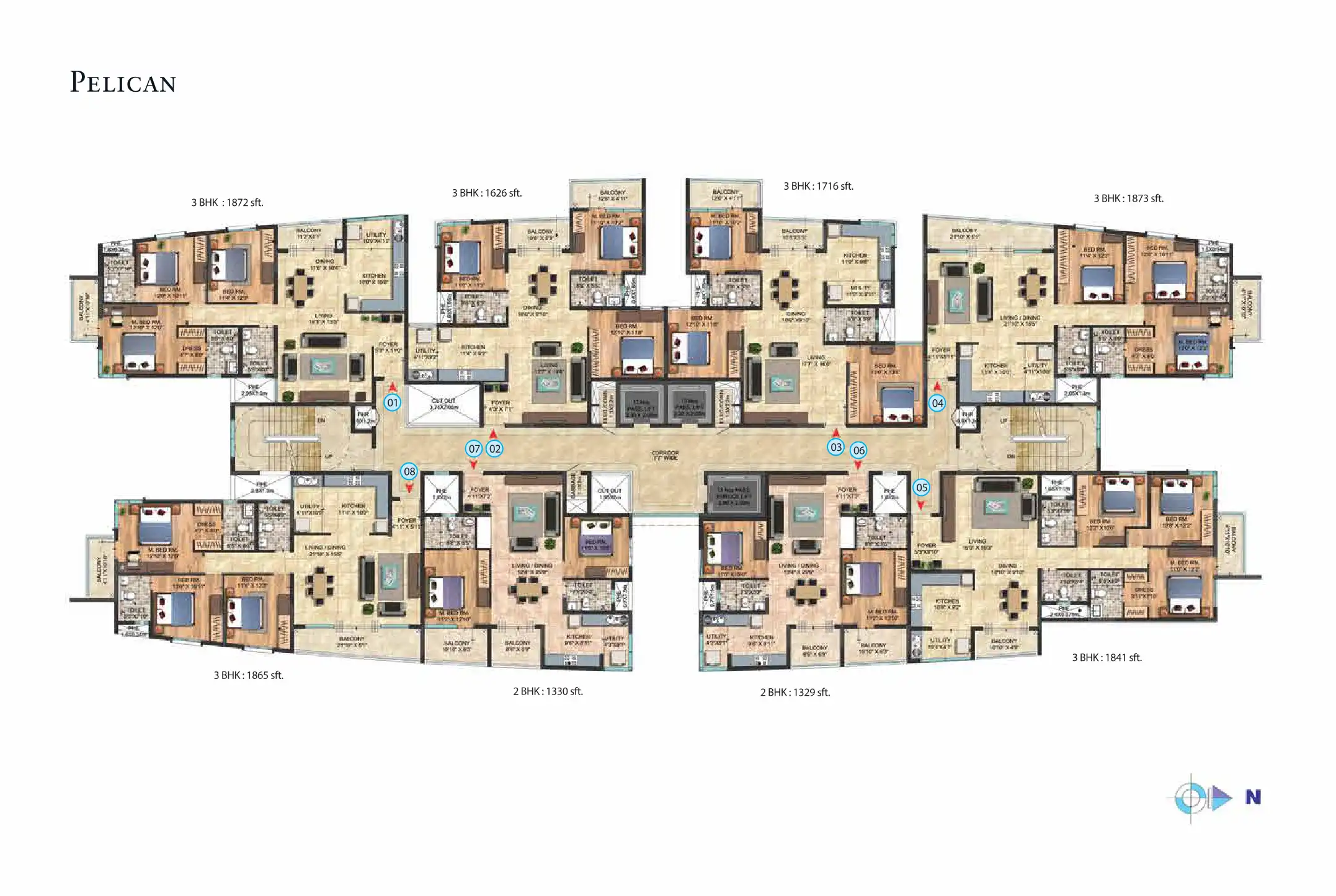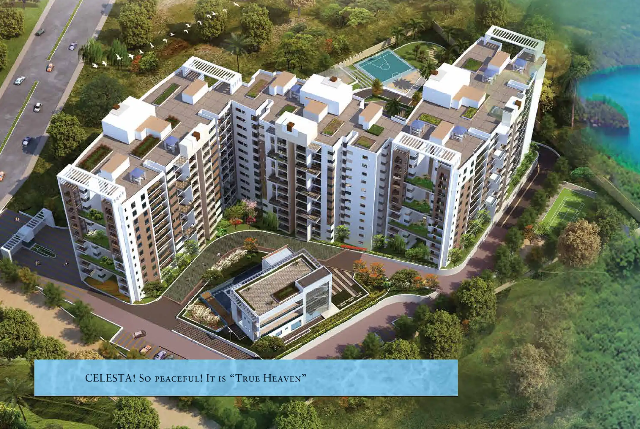 Celesta is an elegantly styled, quiet residential space built on a 4.9 acre plot with three towers named after rare birds sighted around the lake - Pelican, Robin and Koel.