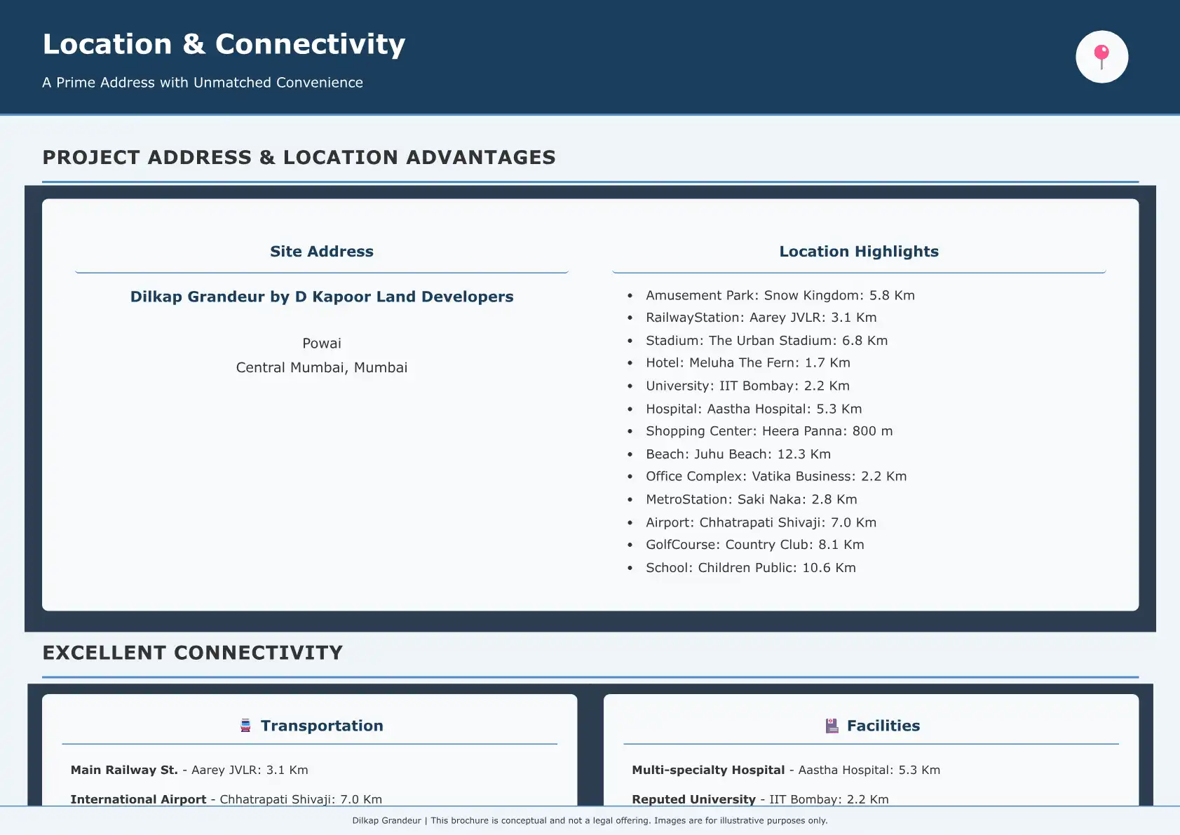 Powai boasts excellent connectivity to various parts of Mumbai. It is strategically located near major arterial roads like the Eastern Express Highway and the Western Express Highway, facilitating easy access. The upcoming Metro Line 6 (Swami Samarth Nagar-Jogeshwari-Vikhroli-Kanjurmarg) is set to further enhance its public transport network, connecting it efficiently to other business hubs and residential areas across the city.
