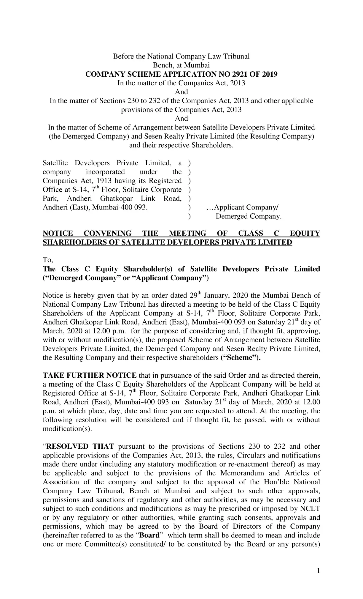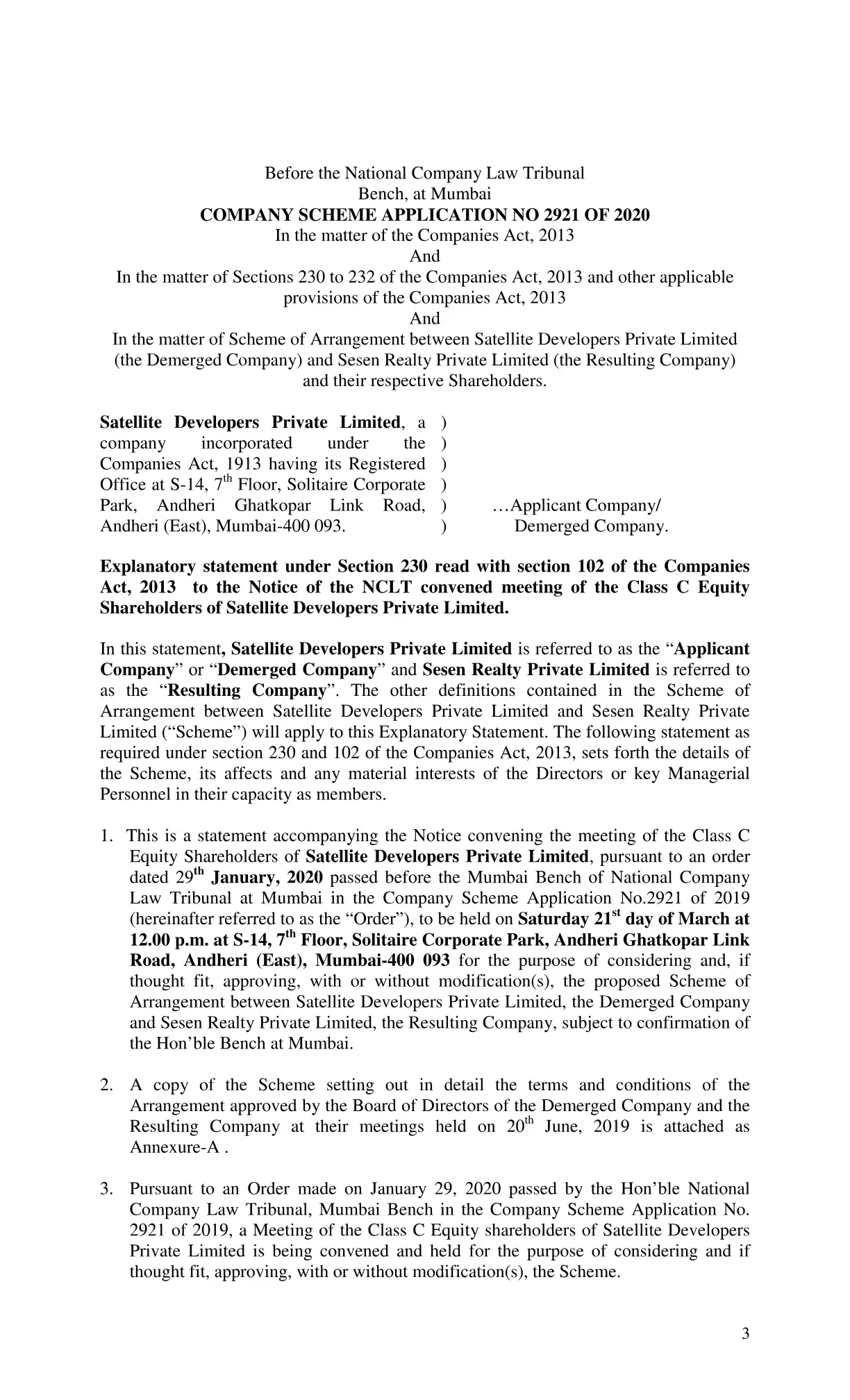by Satellite Developers Private Limited