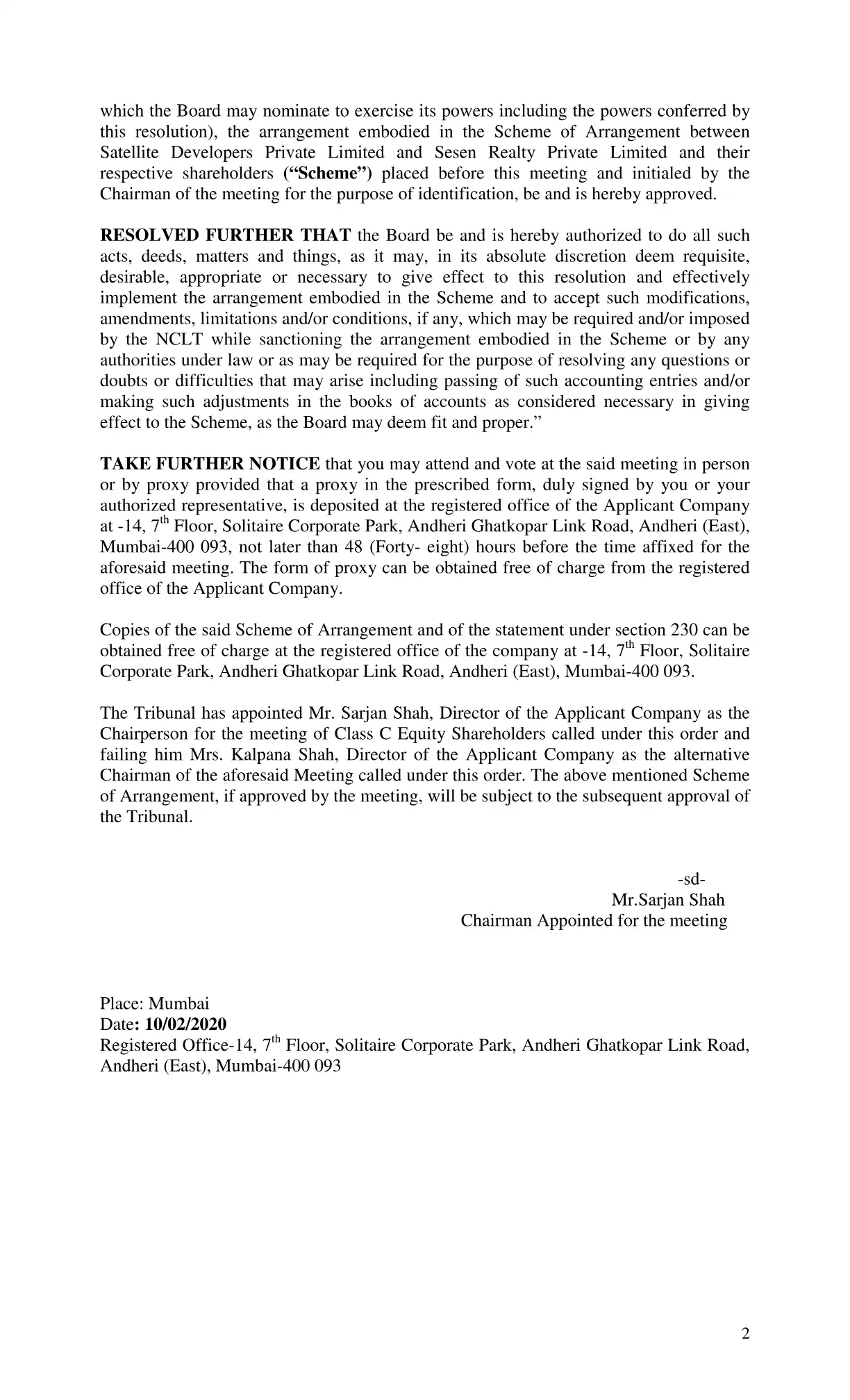 Satellite Developers Private Limited